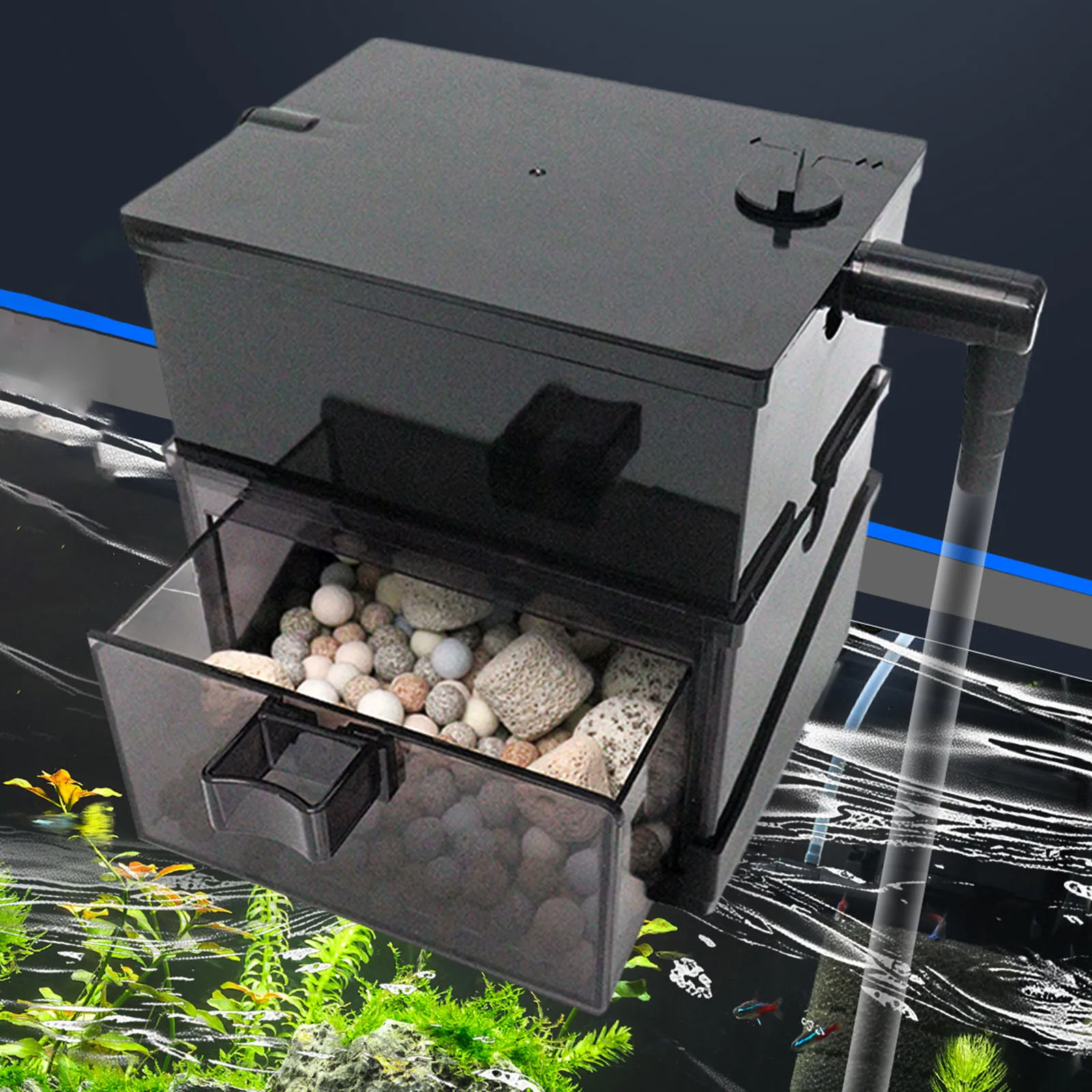Diferentes opciones: Ofrecemos tres opciones diferentes para elegir: 1 juego de caja de filtro de acuario, o 1 cajón de acuario (solo cajón) o 1 bandeja (solo bandeja)