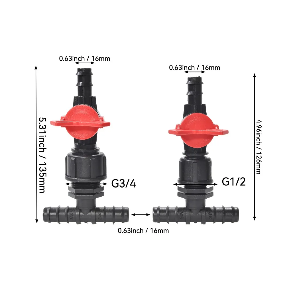 16 mm / 1/2" Tamaño– Ajuste universal para mangueras de jardín y tubos de goteo.