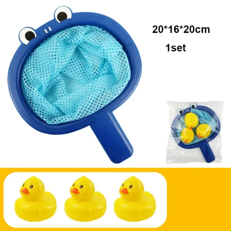 1 Juego de juguetes de baño interactivos para mascotas, red de pesca de rana de dibujos animados con 4 patos de goma, duradero, no tóxico, divertido juego de persecución y masticar para gatos