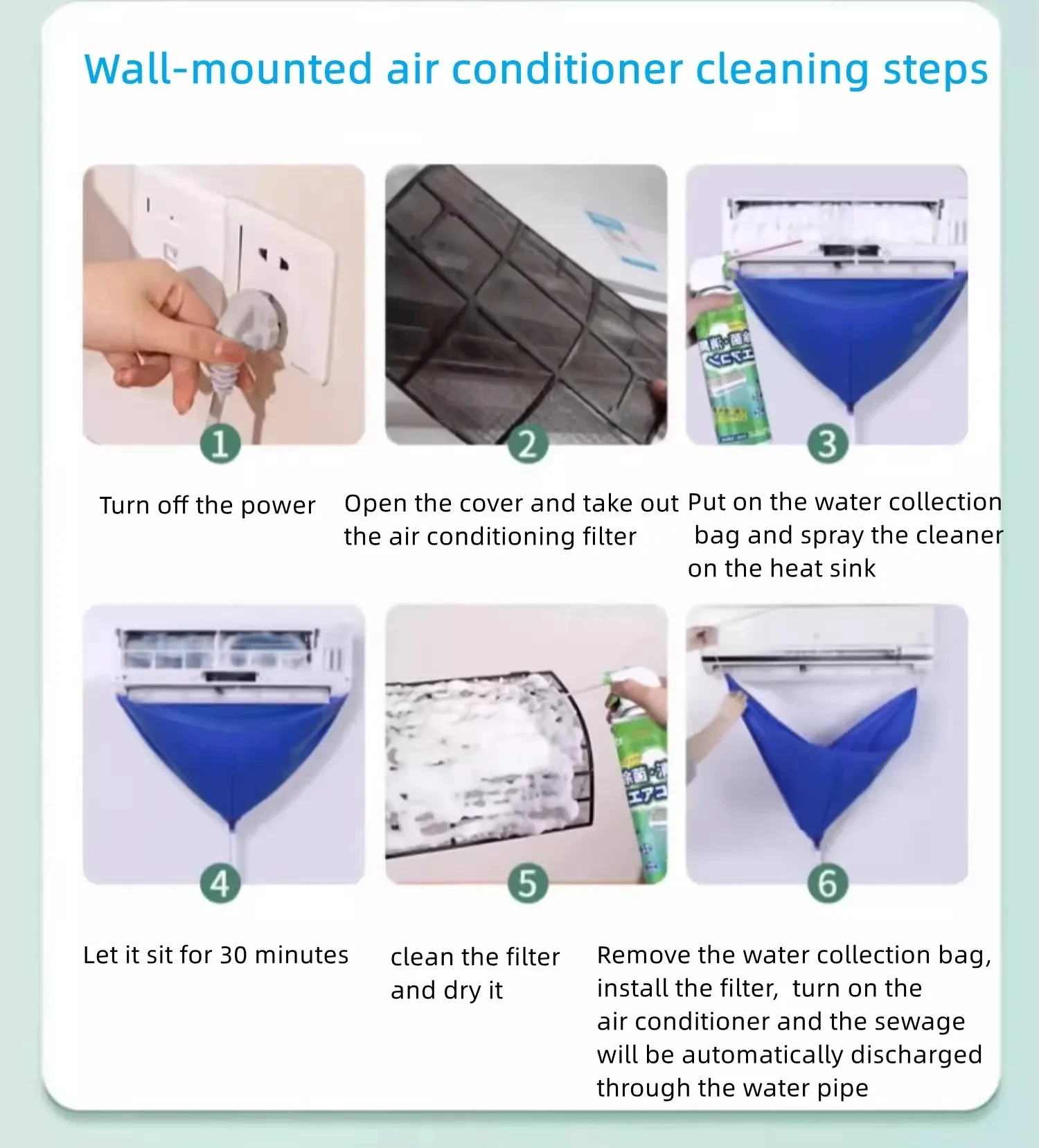 6 unids/set bolsa de limpieza de aire acondicionado Kit de limpieza de aire limpiador de aire drenaje impermeable para lavado acondicionado tubería de drenaje de agua