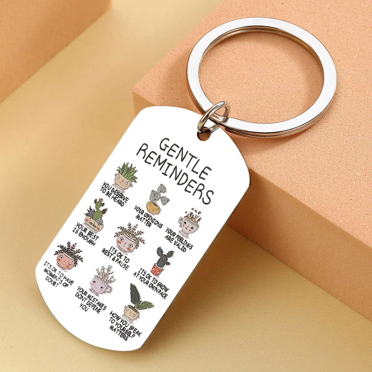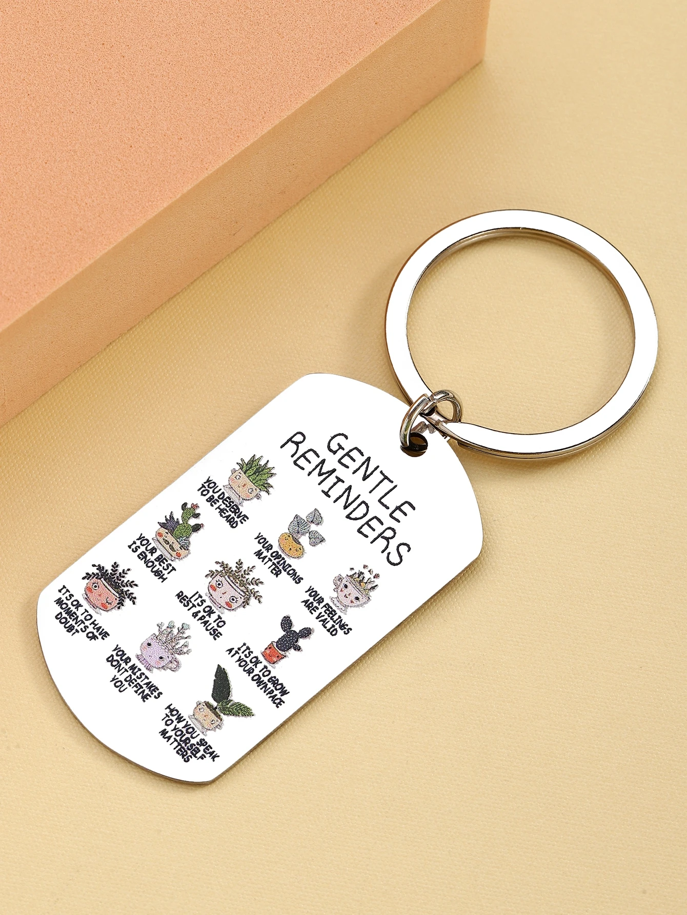Llavero bonito con un mensaje agradable, pero la escritura es tan pequeña que solo es legible cuando se amplía la imagen.