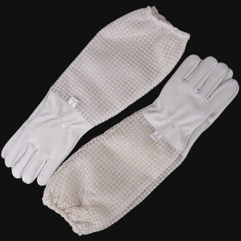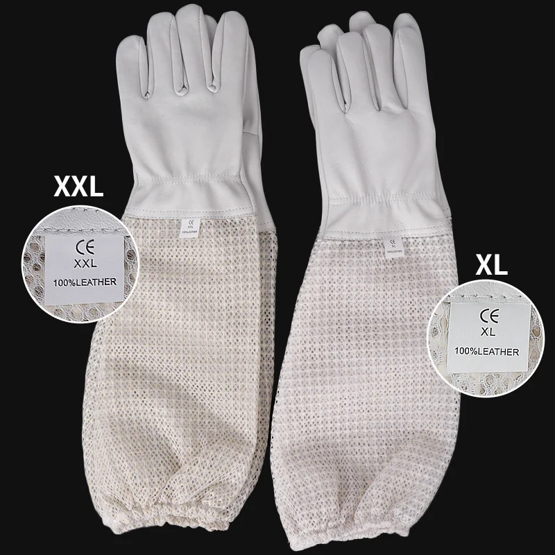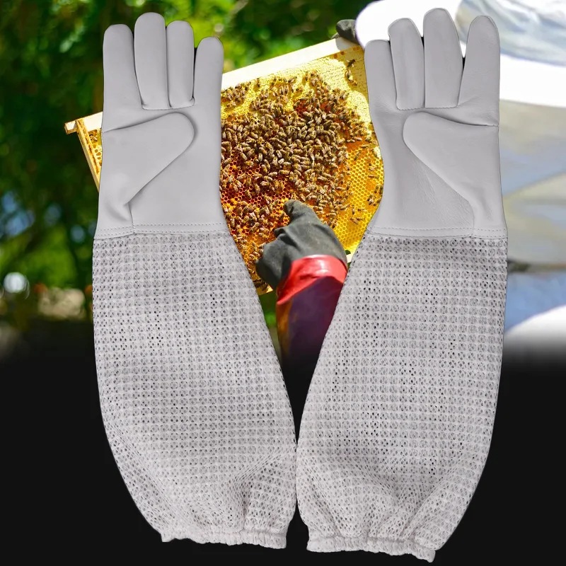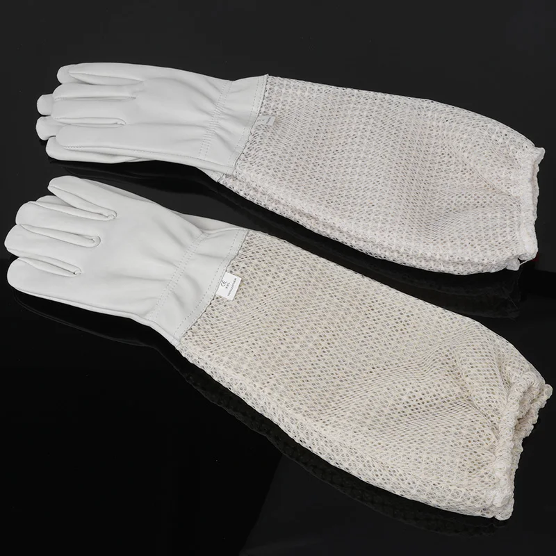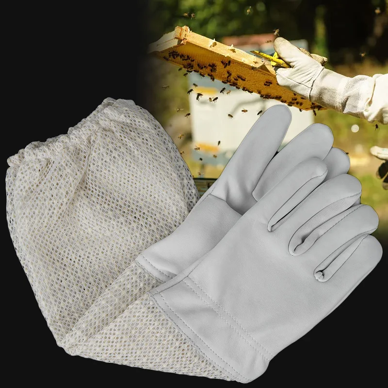 Guantes de malla para apicultura, guantes transpirables de red de tres capas para prevenir picaduras de abejas, guantes de manga larga, accesorios de ropa de abeja, 1 par