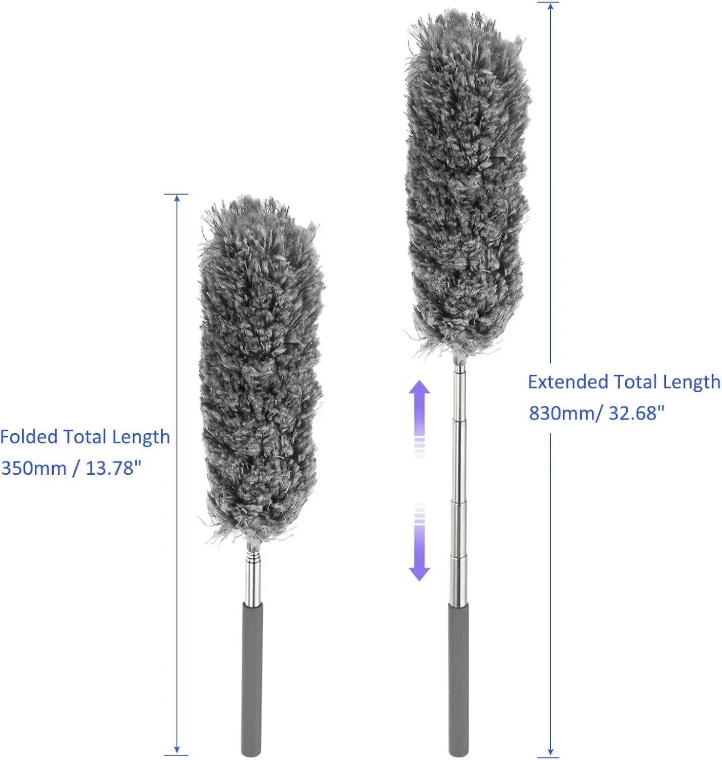 • Elimina el polvo de forma eficaz:El cabezal del plumero de microfibra elimina eficazmente el polvo de áreas difíciles de alcanzar, dejando su hogar limpio y libre de polvo.