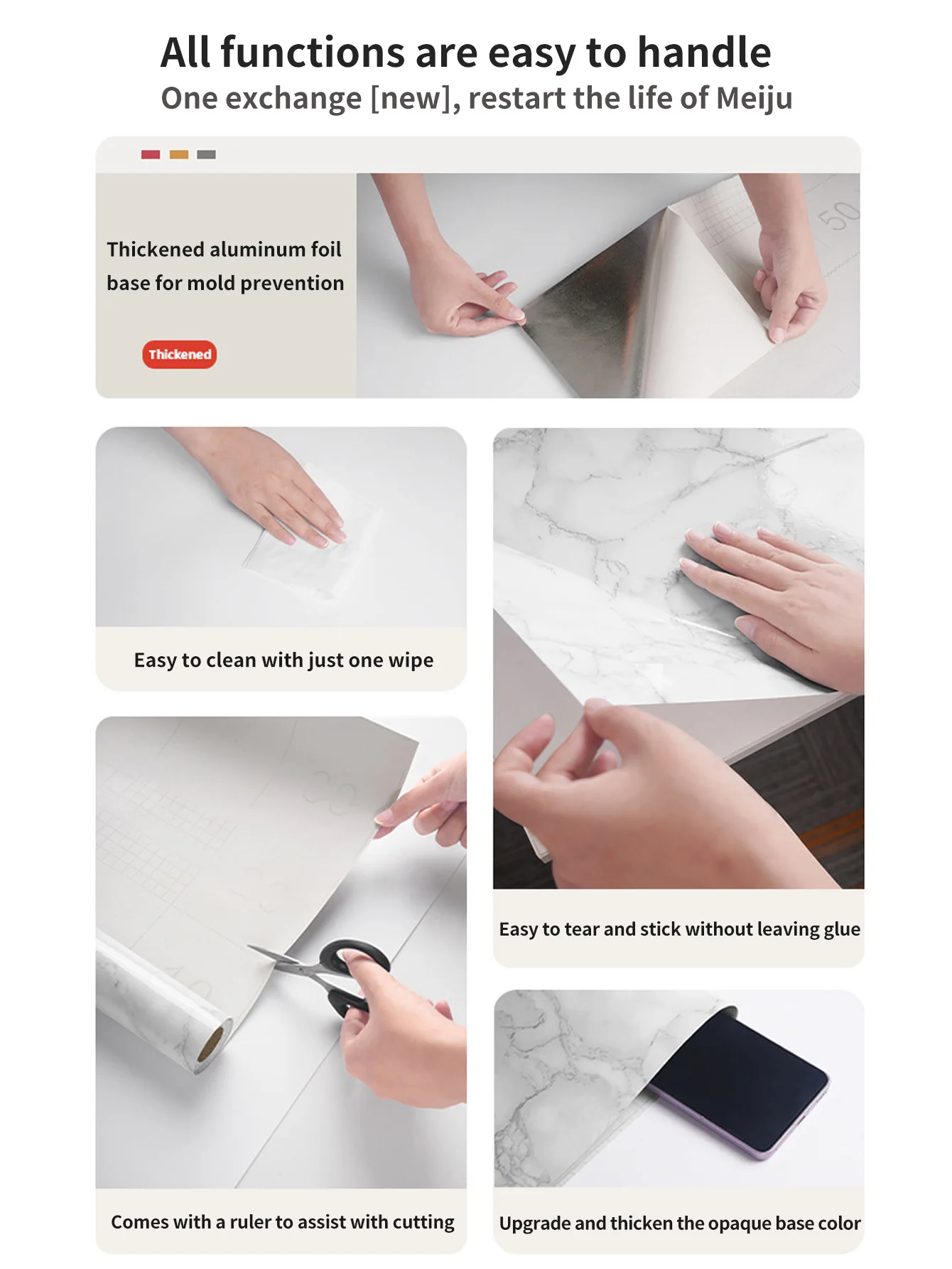 El diseño autoadhesivo permite una fácil extracción sin dejar residuos, perfecto para inquilinos o quienes buscan una renovación rápida.