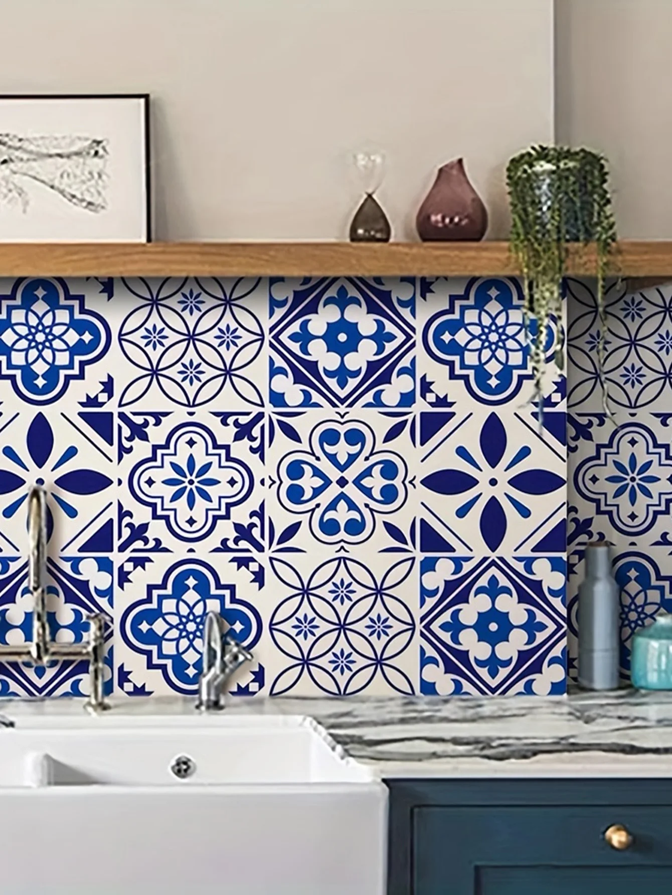Ekranıza biryo moderno şıklık katın: geometrik desenler, su odanın estetik çekiciliğini artırır.