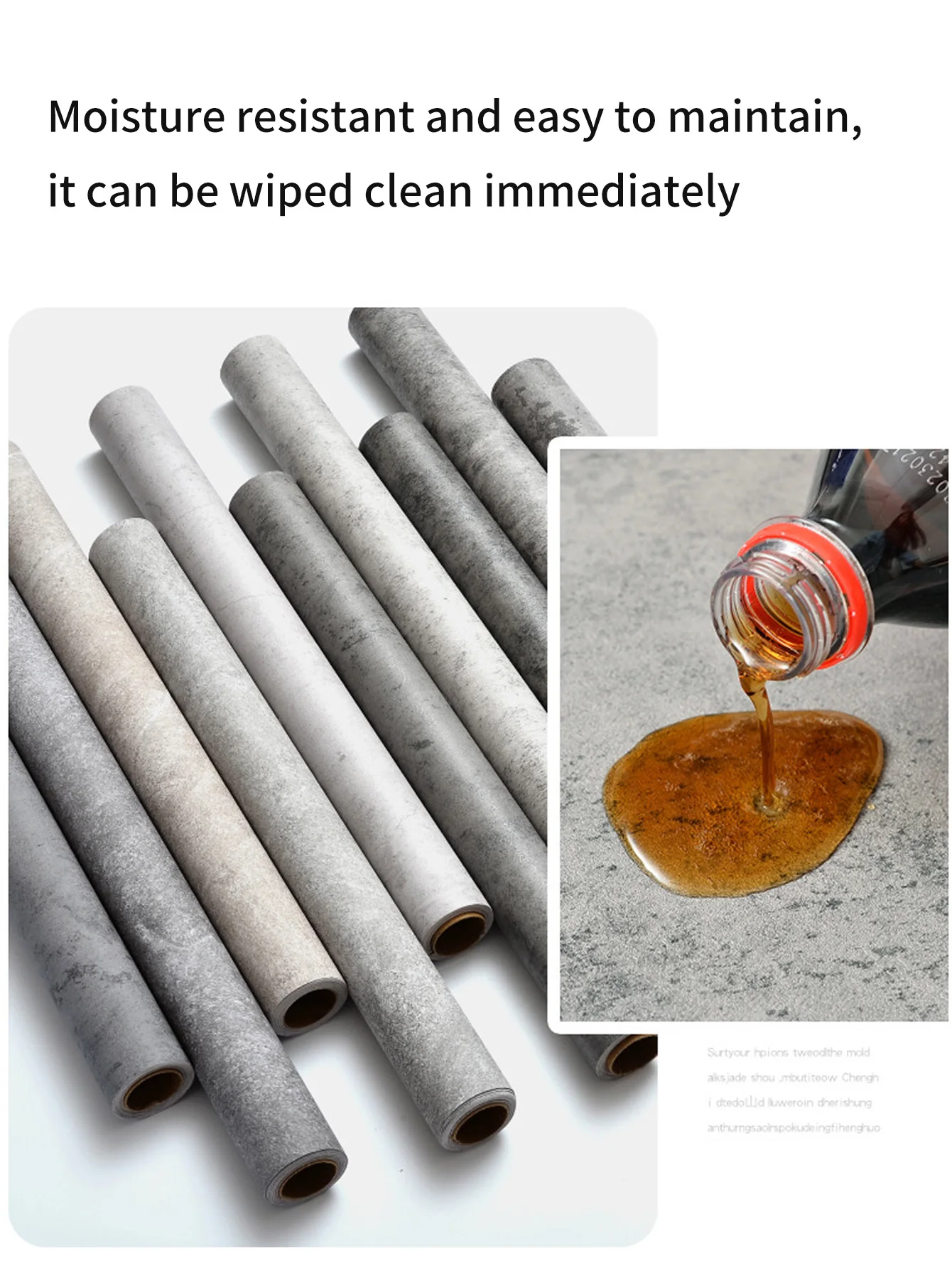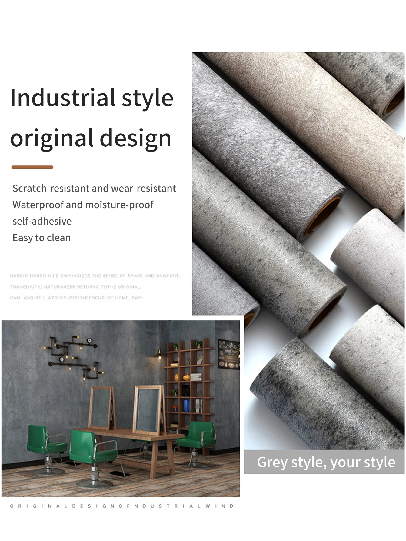 El color gris industrial del papel pintado añade un aspecto moderno y elegante a cualquier habitación, realzando su atractivo estético.