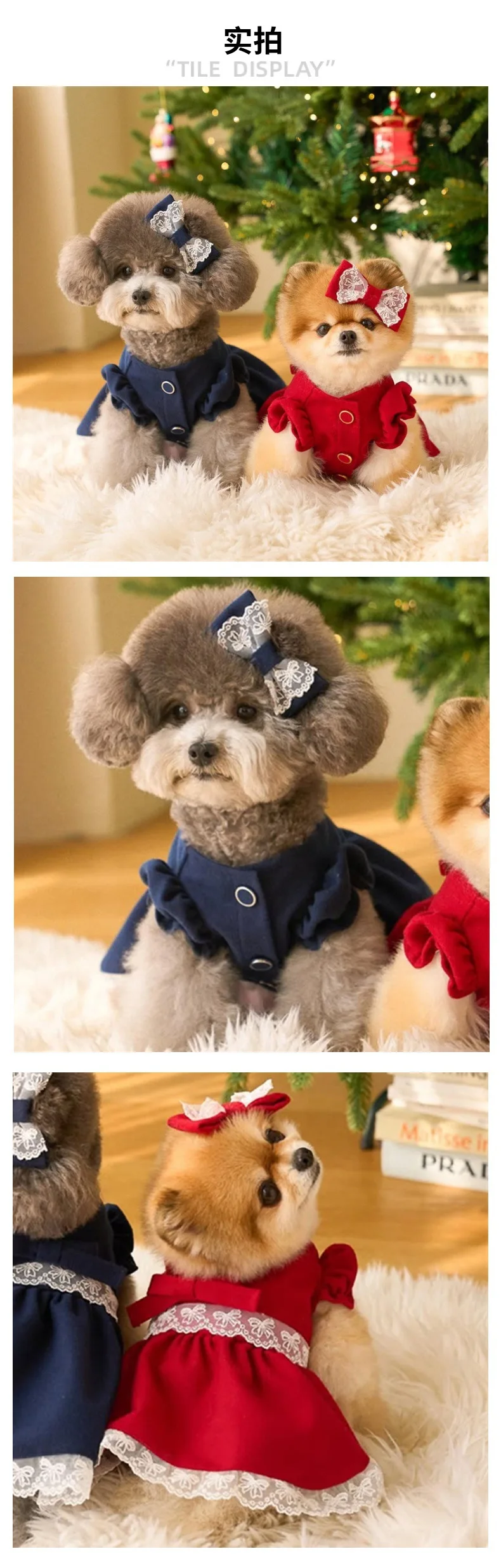 1/Set Pet Christmas Dress New Year Small Medium Sized Dog Cat Double Sided Woolen Bow Dress Bow Dog Clothes for Small Dogs