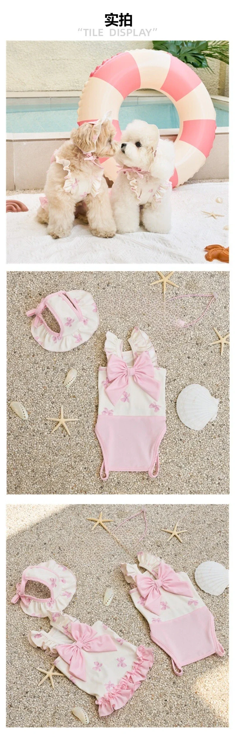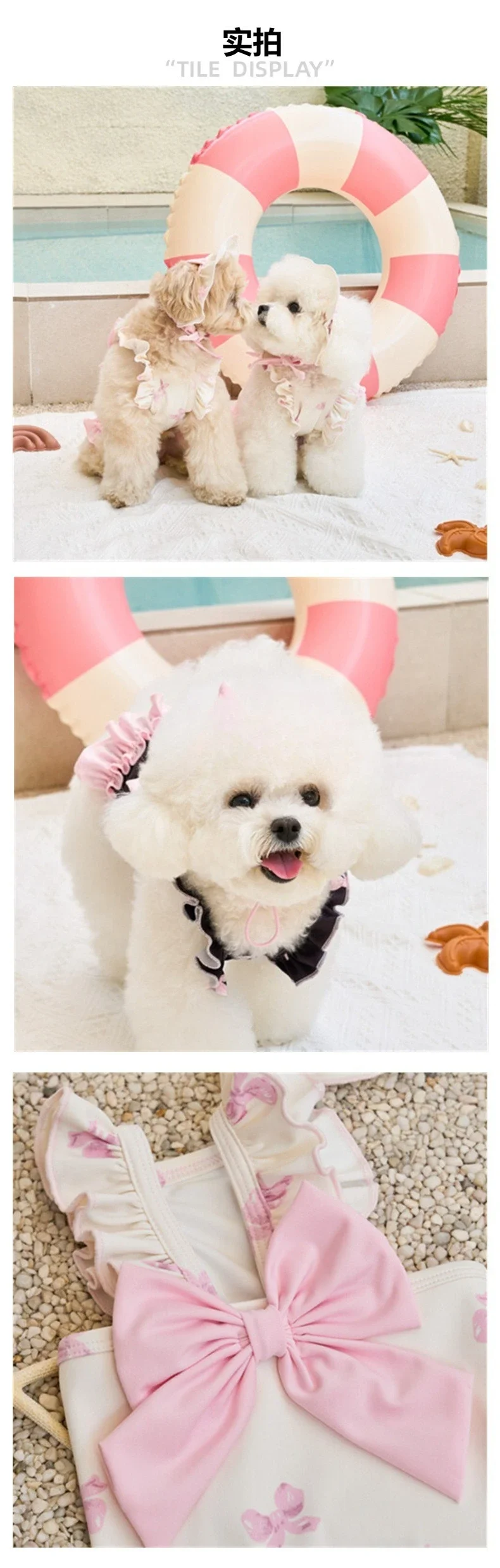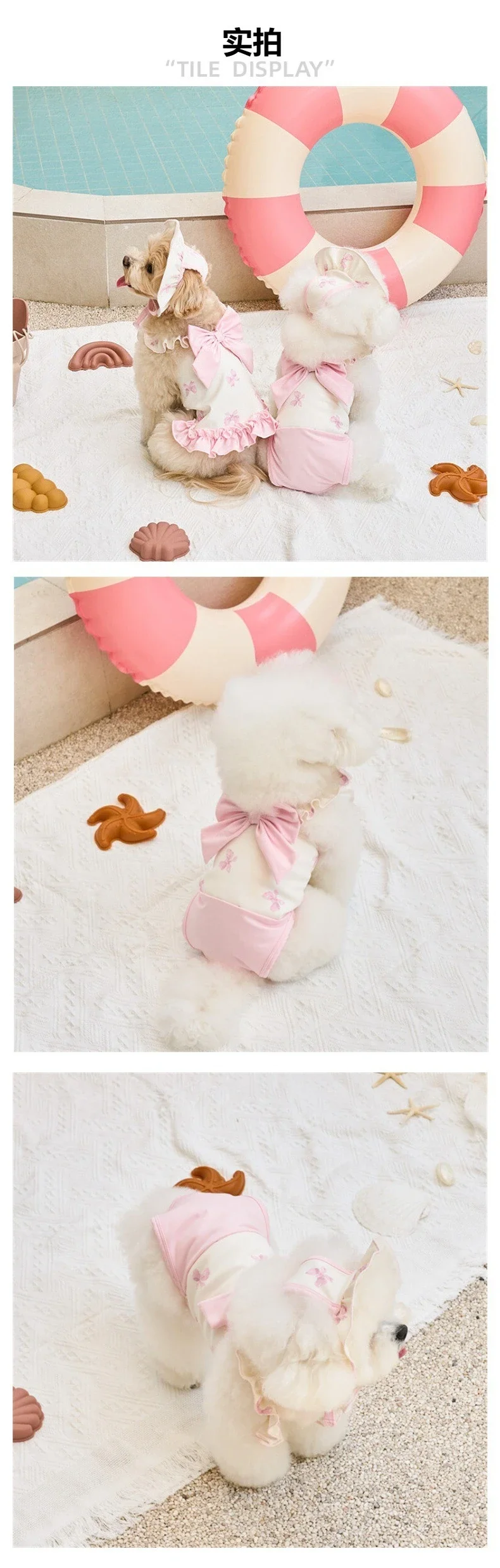 1/Set de traje de baño estampado de verano para perros, traje de baño con tirantes y lazo rosa para gatos, traje de baño de dos piernas a la moda, mono para mascotas, ropa para perros de peluche, ropa para cachorros