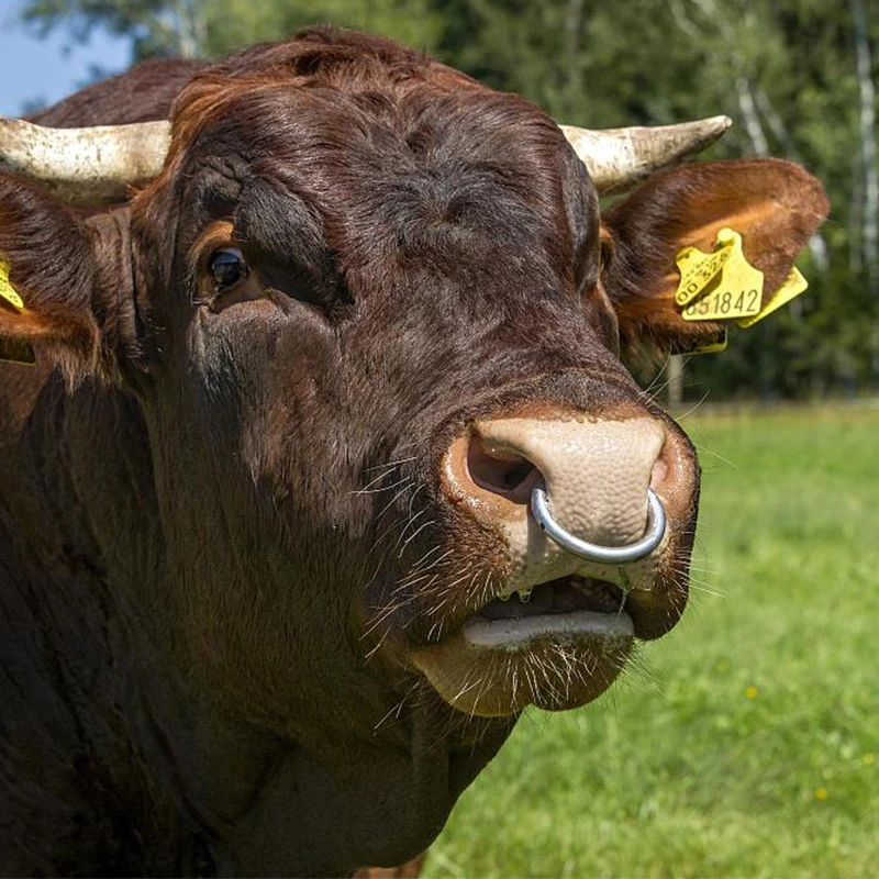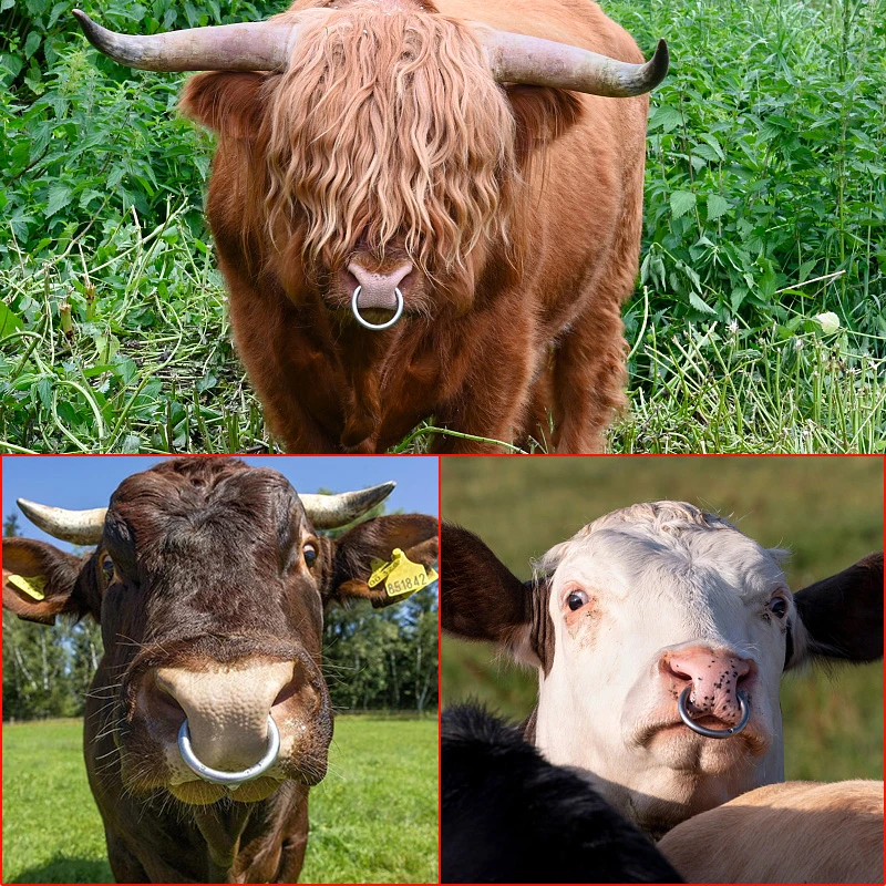 No pinche demasiado hacia adelante o fácil de arrancar; ni demasiado lejos detrás del nervio no es sensible, pero también es más difícil de usar los anillos nasales. Después de usar un anillo en la nariz para dejar que el ganado solo descanse de 1 a 2 días, y luego tirar de la nariz a menudo llevado a la cuerda ganado tiene hierba donde el ganado, para que el ganado Conozca los beneficios de usar un anillo para la nariz (con hierba para comer), y gradualmente deje que las vacas sequen una pequeña granja, entrenando dócil. El anillo de nariz pasado hecho de hierro, cobre y más tarde ahora hay muchos lugares en lugar de acero inoxidable es lo mejor.
