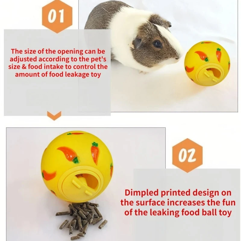 Material de calidad: la bola de golosinas para conejos está hecha de material de vinilo, sólido y duradero, liviano y compacto, resistente a mordeduras, práctico y seguro para contener la comida de sus mascotas.