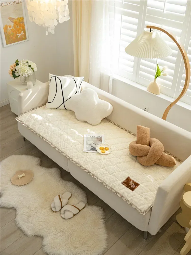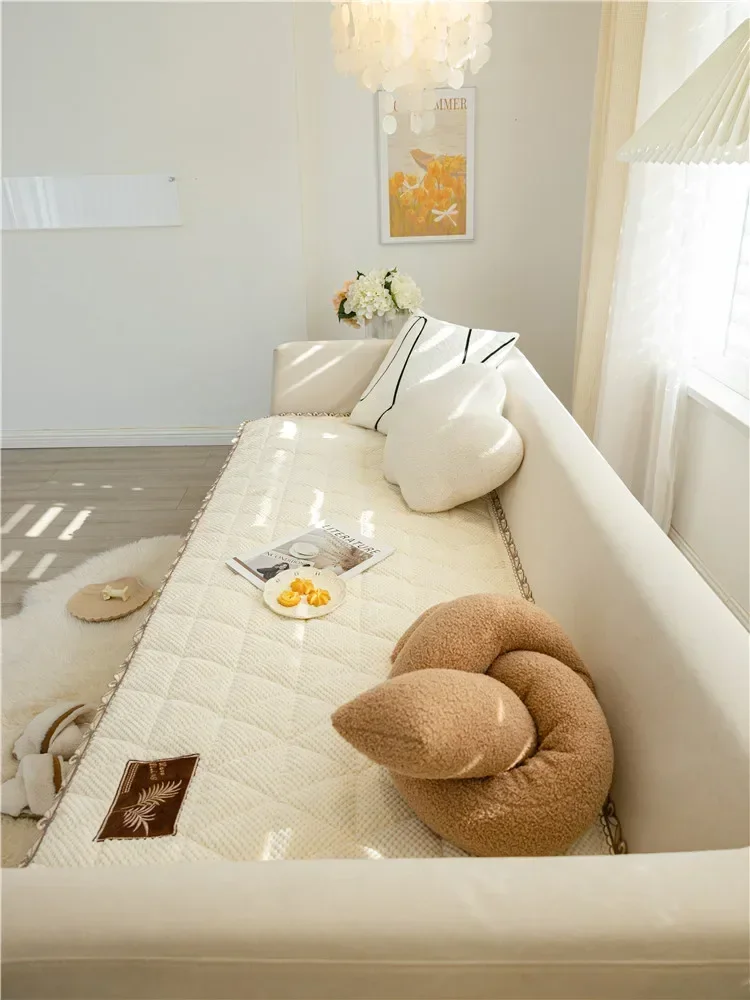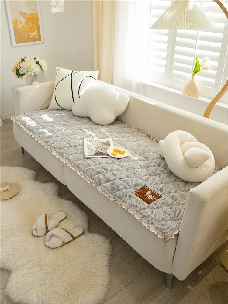 1 Uds. Cojín de sofá de chenilla de Color sólido, funda de sofá antideslizante duradera Universal antiarañazos para las cuatro estaciones para sala de estar