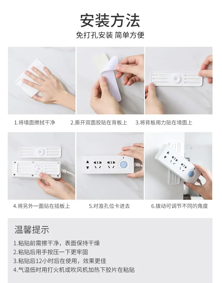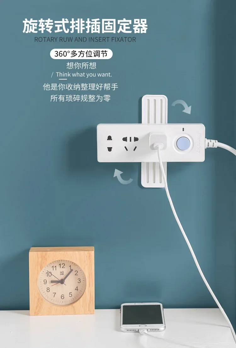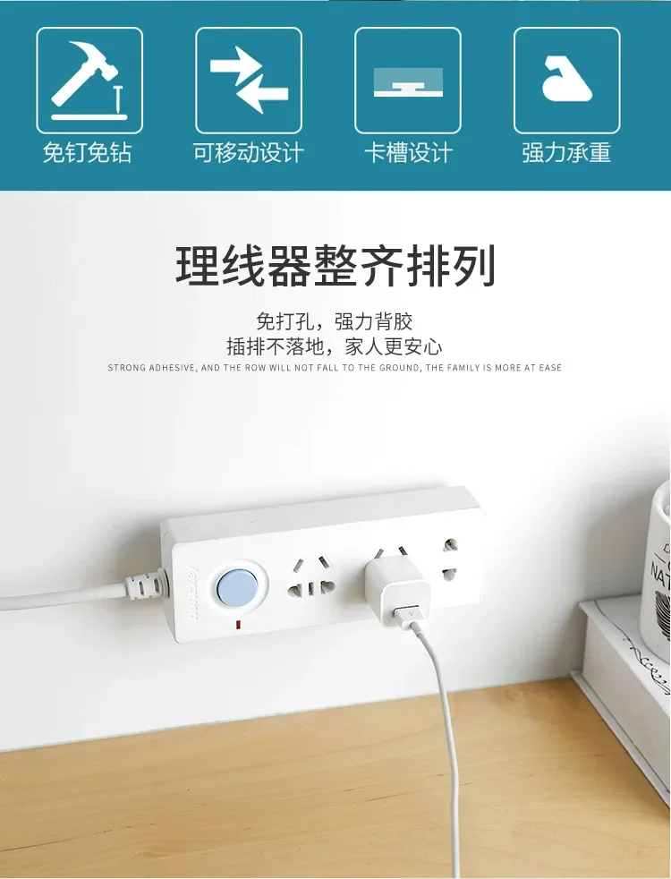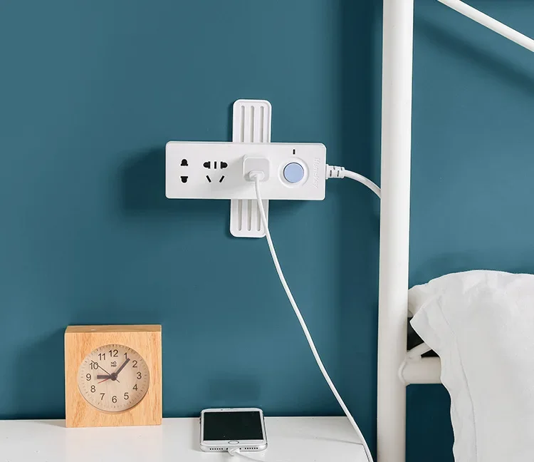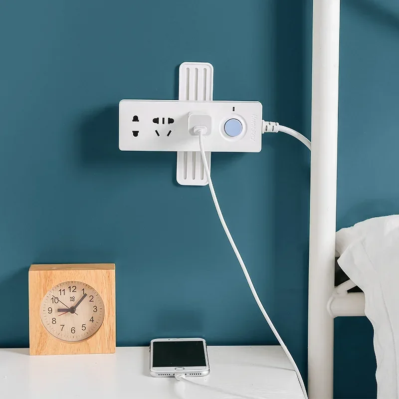 1 Uds. Enchufe de extensión autoadhesivo montado en la pared fijador tablero de enchufe colgador de almacenamiento Cable organizador de cables soporte remoto