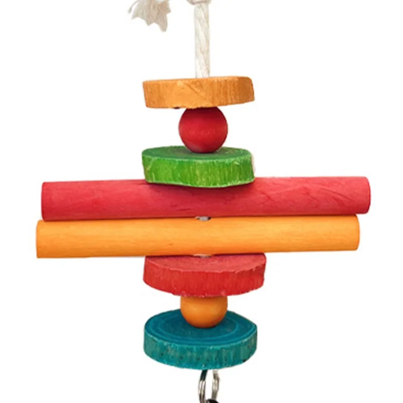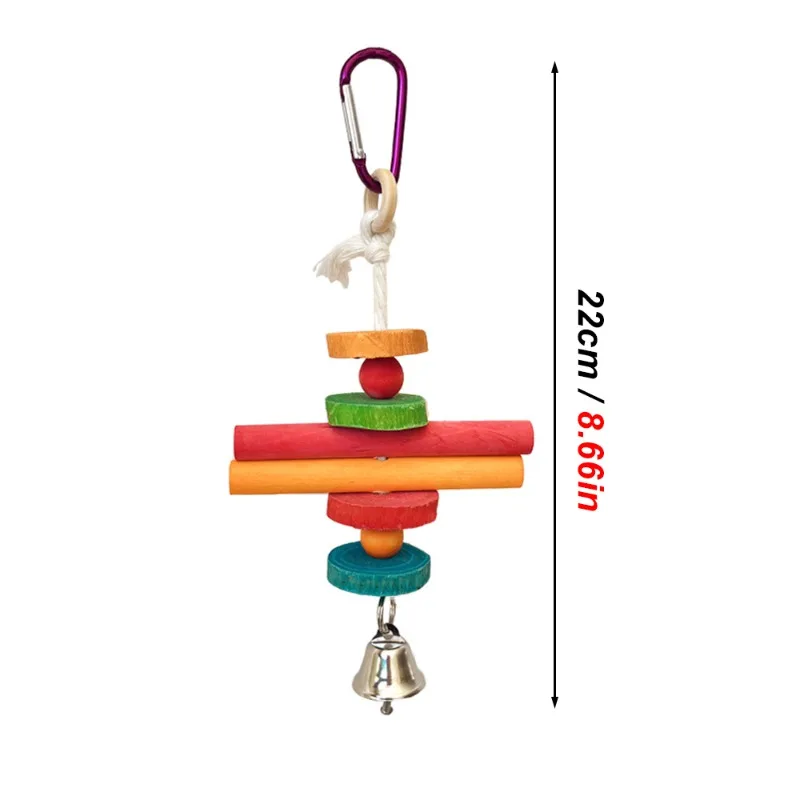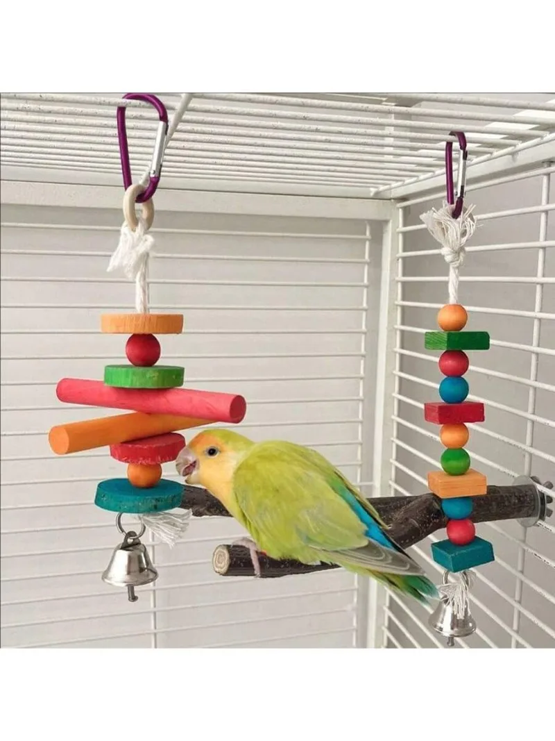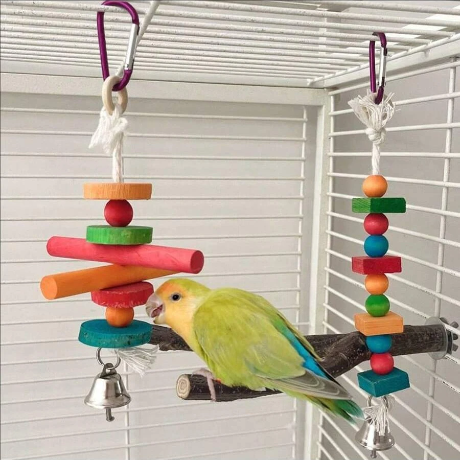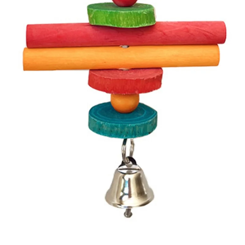 1 unidad de cuentas de madera de colores aleatorios, pinchos para morder pájaros colgantes, juguetes interactivos para masticar dientes con campana para decoración de jaulas para loros y mascotas
