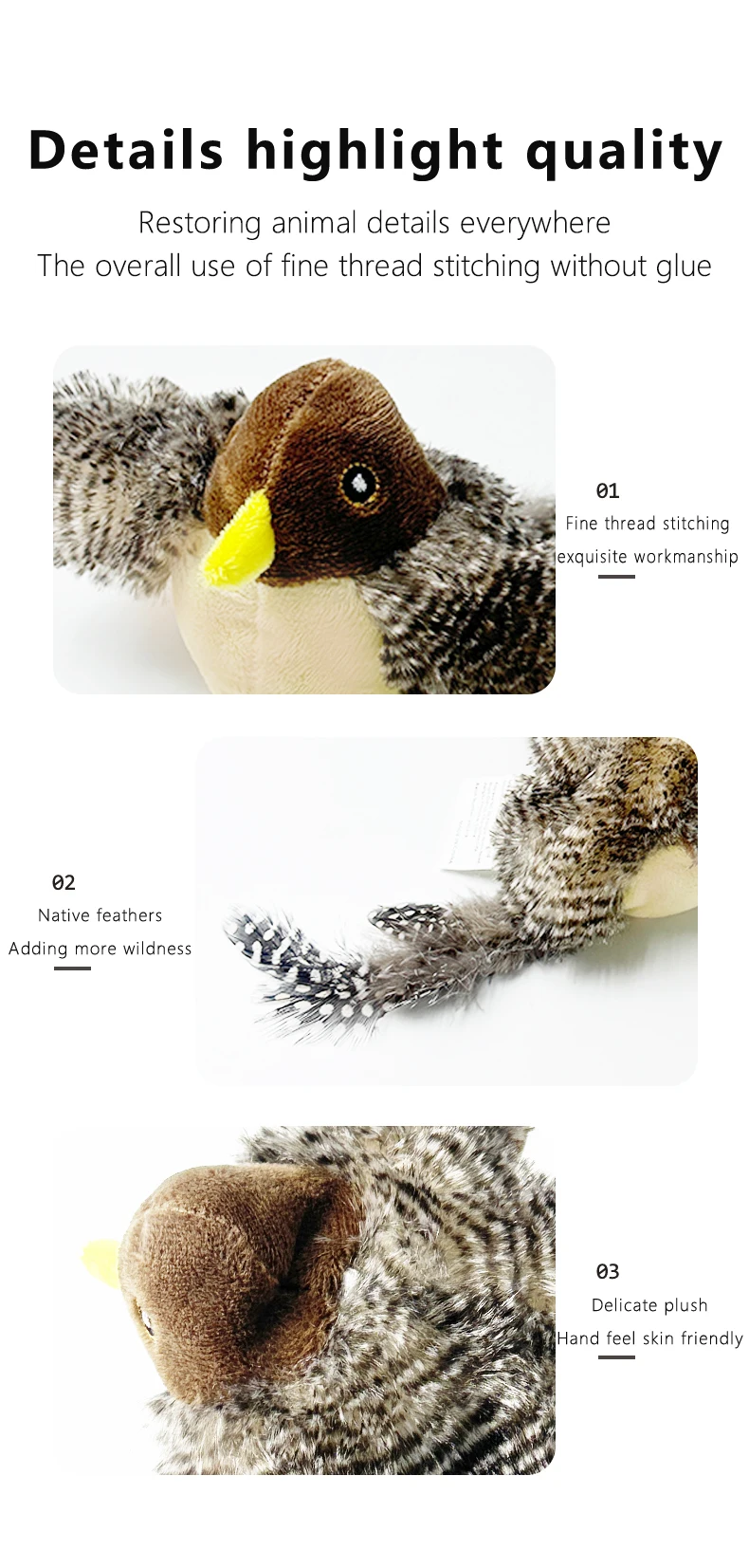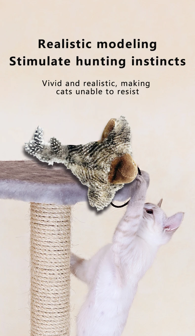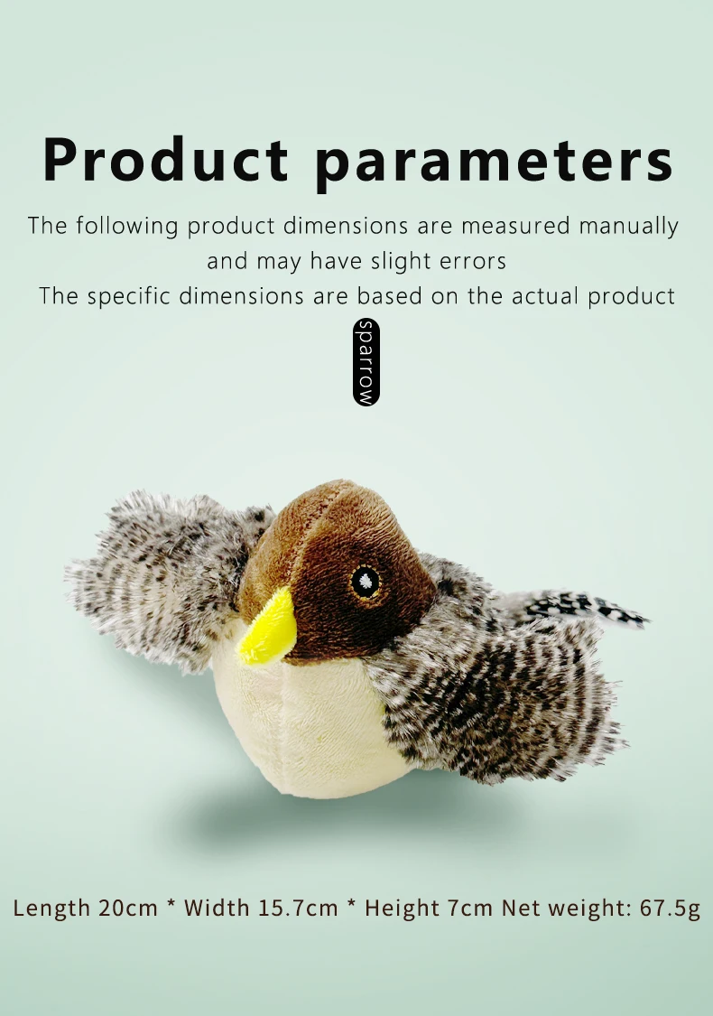 2. Tiempo de juego felino mejorado: al imitar los sonidos y movimientos de pájaros reales, nuestro pájaro chirriante simulado proporciona una experiencia realista para su compañero felino.
