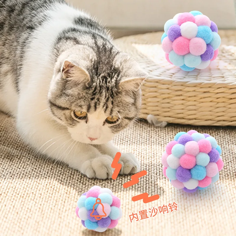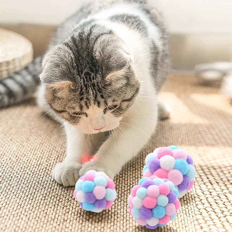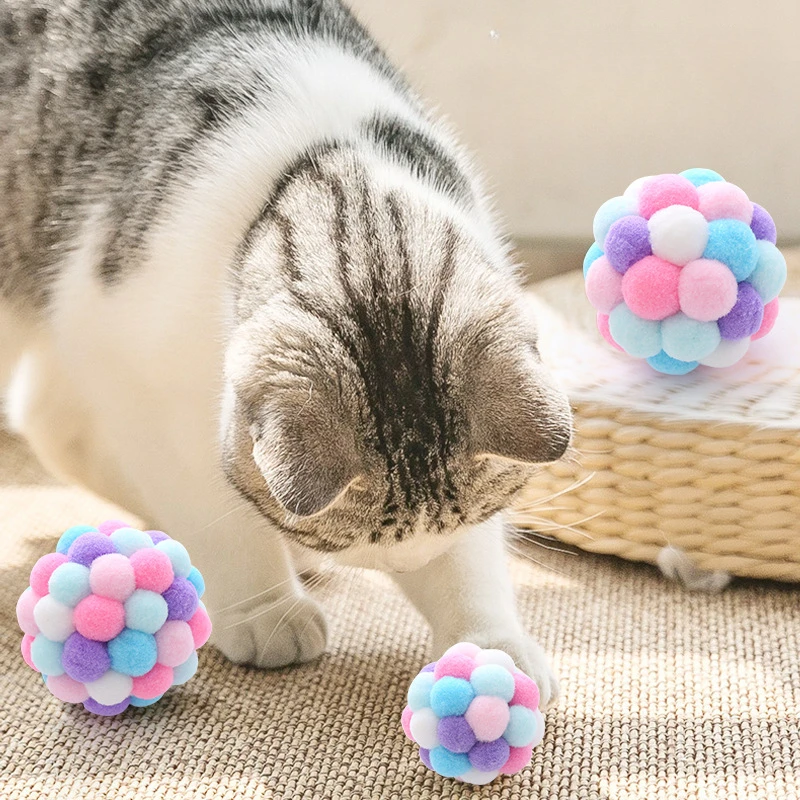 1 unidad de juguetes para gatos de 6cm de diámetro, pelota de peluche, campana elástica para mascotas, pelota para jugar al gato, lana colorida