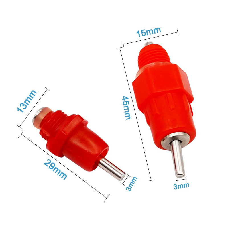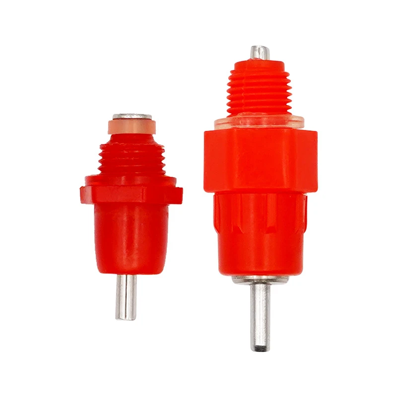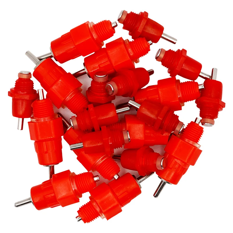 Cuando se usa en una jaula, cada pieza de la tetina puede servir de dos a cuatro pollos o más, según sus requisitos, el tipo de ave y las especificaciones de la jaula.