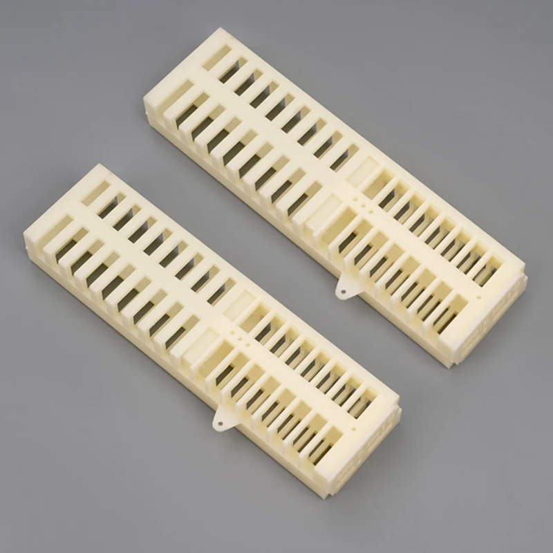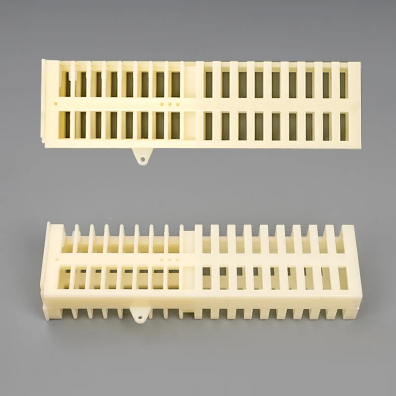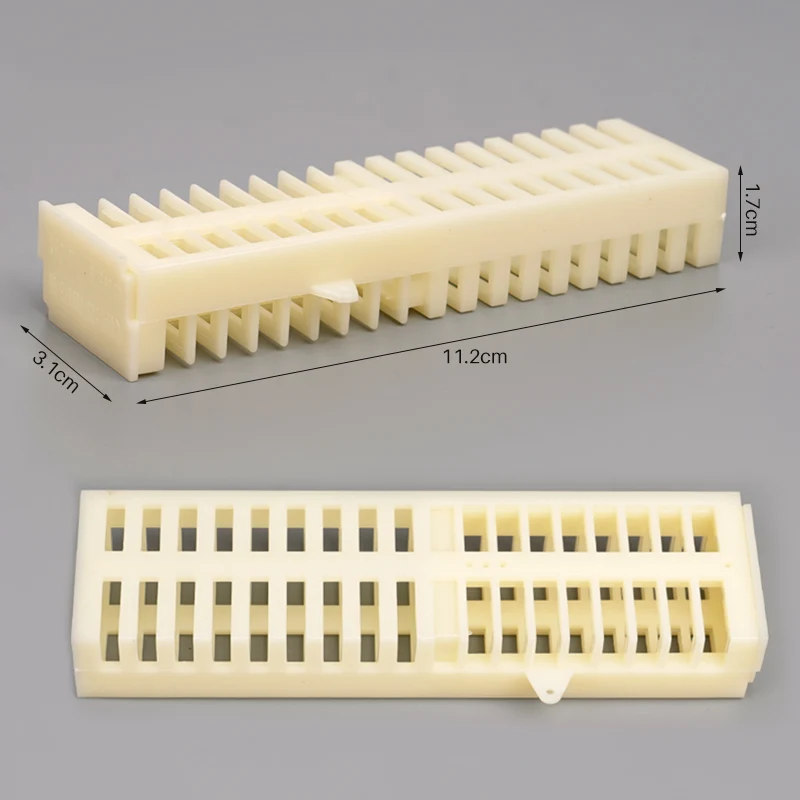 La jaula de plástico para prisioneros está hecha de plástico. Está rodeado por una estructura de puerta real con láminas de plástico en ambos extremos. El lado estrecho tiene una pequeña puerta que se puede abrir para cargar y liberar la abeja reina. Cuando se usa, la jaula del prisionero se puede incrustar en el bazo cerca de la viga superior o la viga inferior, o se puede colgar entre los dos bazos. Abra y ajuste la distancia, use la abeja, el control de la natalidad, el control y la introducción del rey de la abeja. Práctico y simple, ¡fácil de usar!