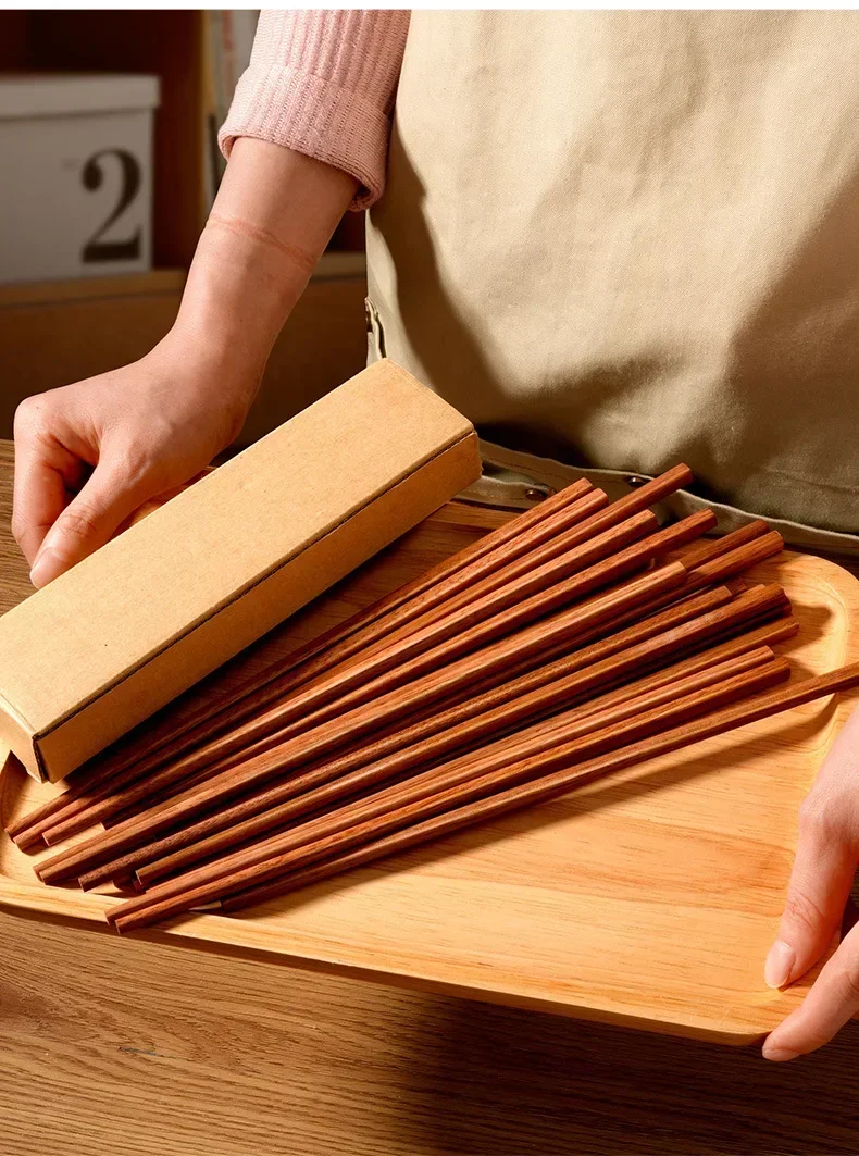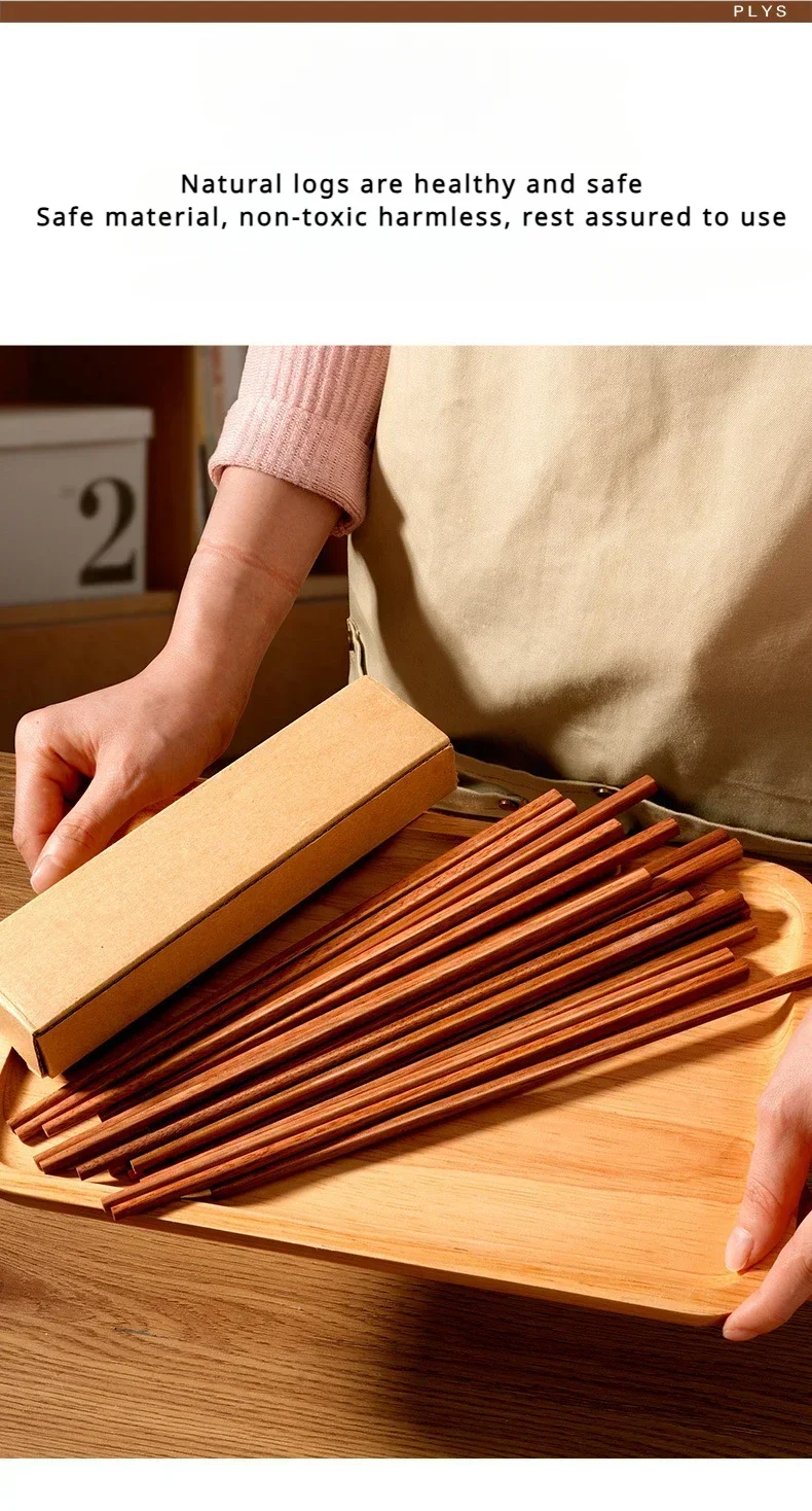 10 par/set palillos de madera Natural, palillos antideslizantes reutilizables, palitos de comida para Sushi, vajilla para el hogar, utensilios de cocina