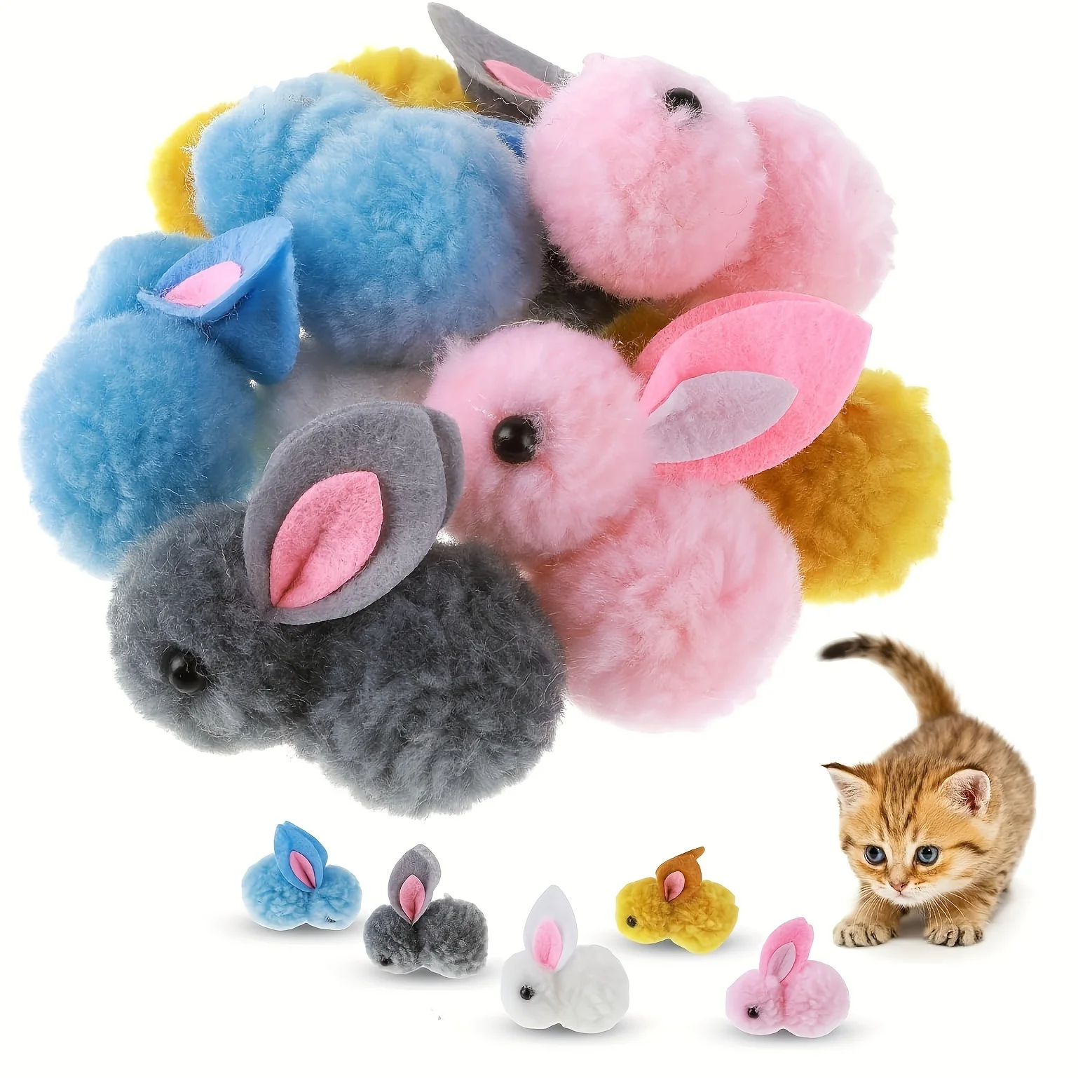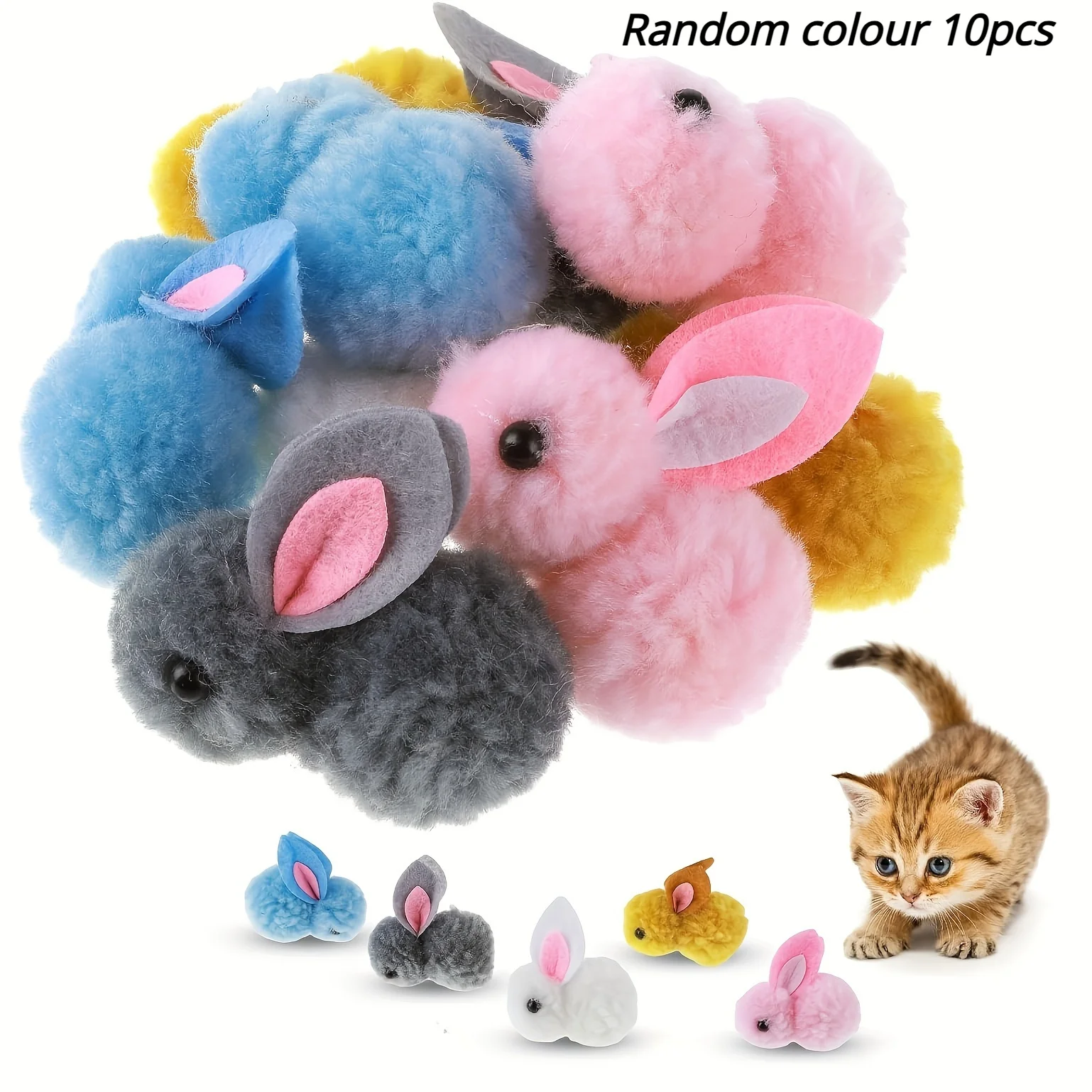 10 Uds. De juguetes para gatos de conejito de peluche de Color aleatorio, bolas de conejo de juguete para gatos suaves y interactivos, bolas de juguete para gatos de peluche coloridas, suaves y bonitas