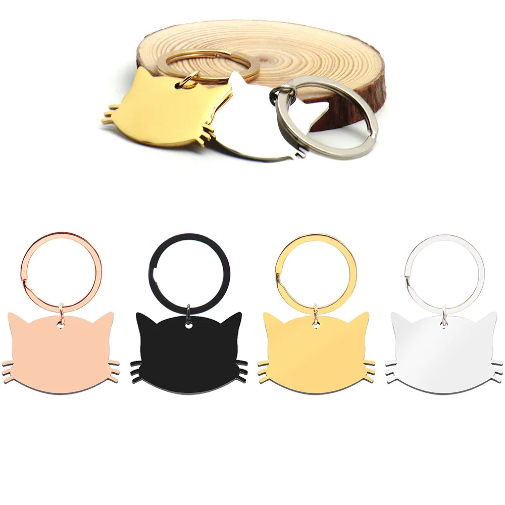 10Pcs Customizable Cute Pet Stainless Steel Tag Key Ring Pendant Charm Anti-Lost Collar Accessories
