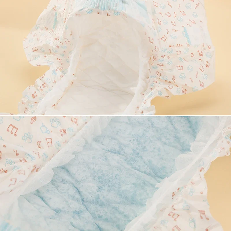 2. Pañales para mascotas, capa fina de malla transpirable, no congestionados ni calientes, que brindan a las mascotas una experiencia y comodidad diferentes. El polímero de gran capacidad absorbe el agua, lo que permite que las mascotas disfruten de cada refrescante.