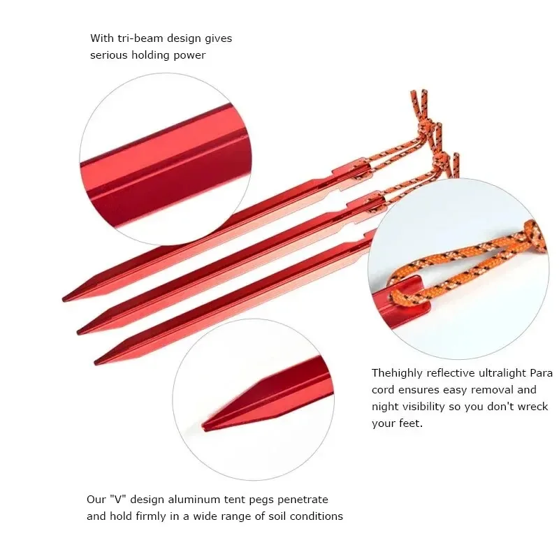 3. Su forma única de tres lados con fuerte agarre es suficiente para que su tienda se fije firmemente en una amplia gama de suelos.
