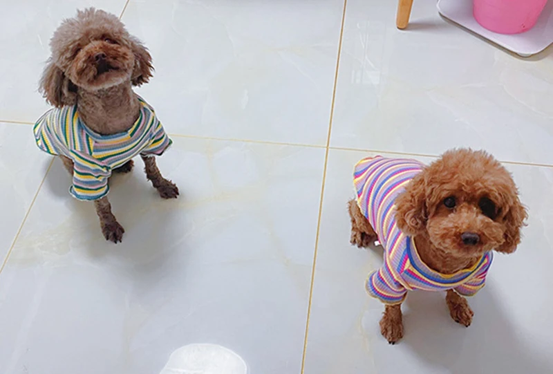 Blusas muy bonitas, talla perfecta: 2XL para un yorkie de 5 kg (corresponde a las medidas especificadas). La tela es muy suave, el perro no se siente apretado. ordenaré más ❤️ 😻