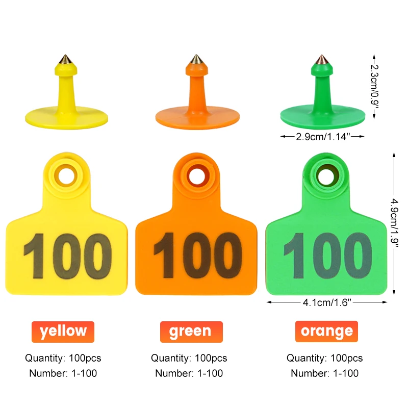 100 juegos de etiquetas de oreja de cerdo de vaca de TPU para ganado, etiquetas de oreja de ganado de vaca, etiquetas de oreja de animales de granja, cerdos y ovejas