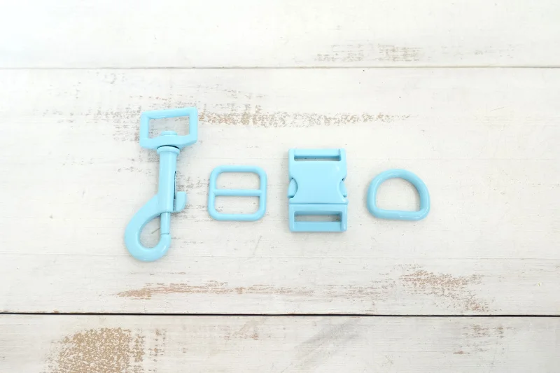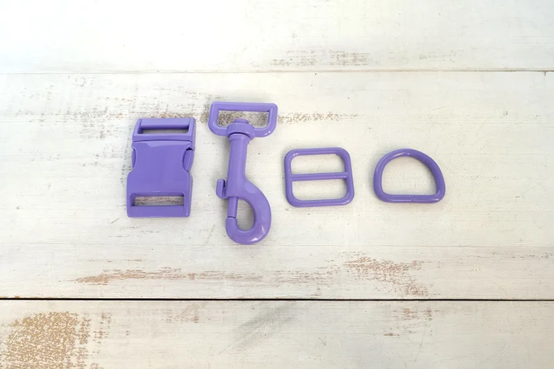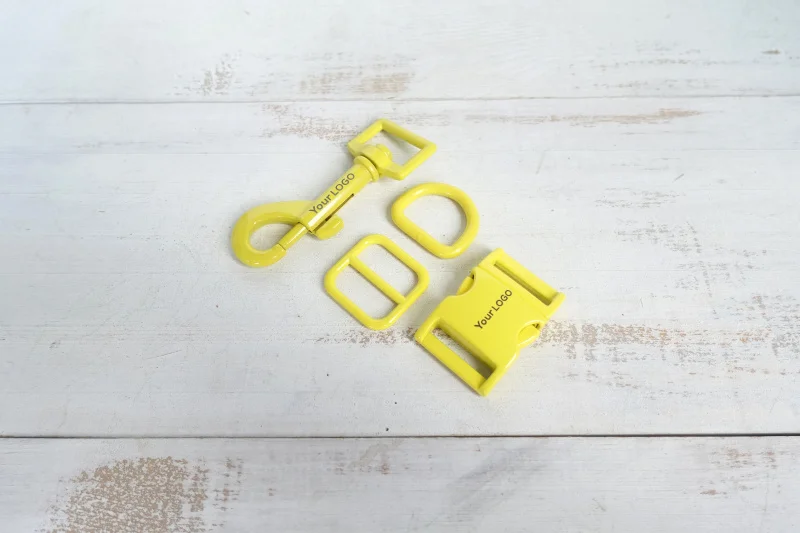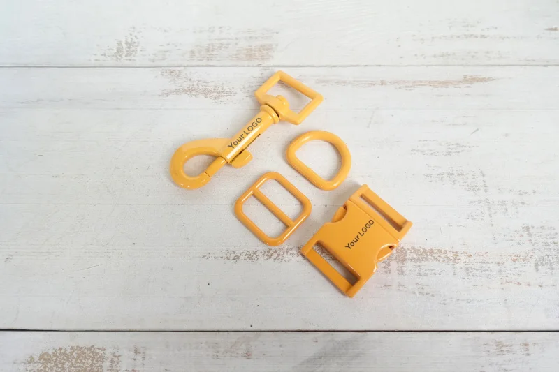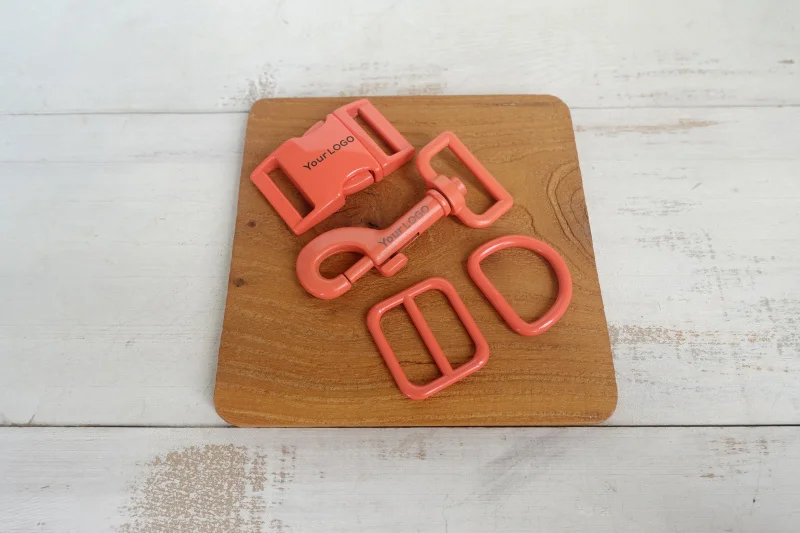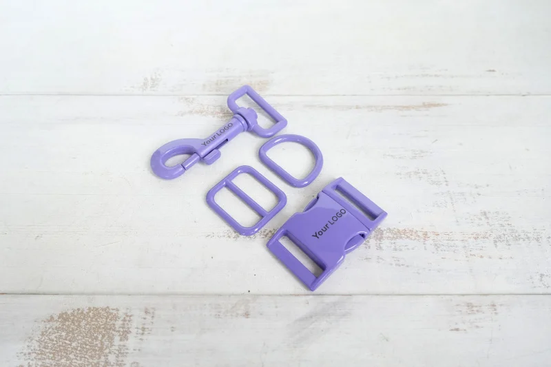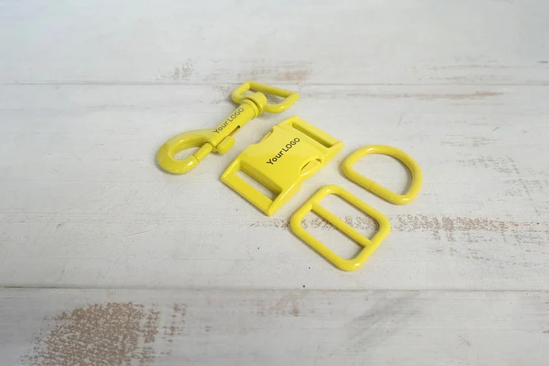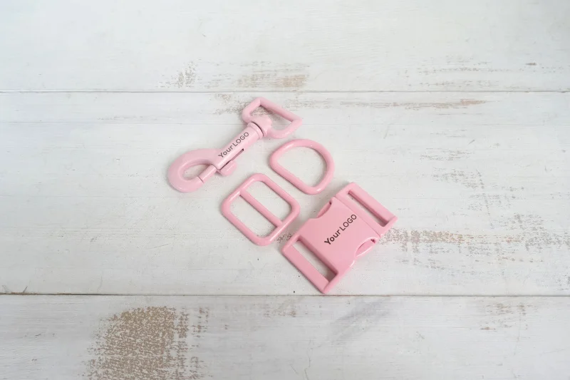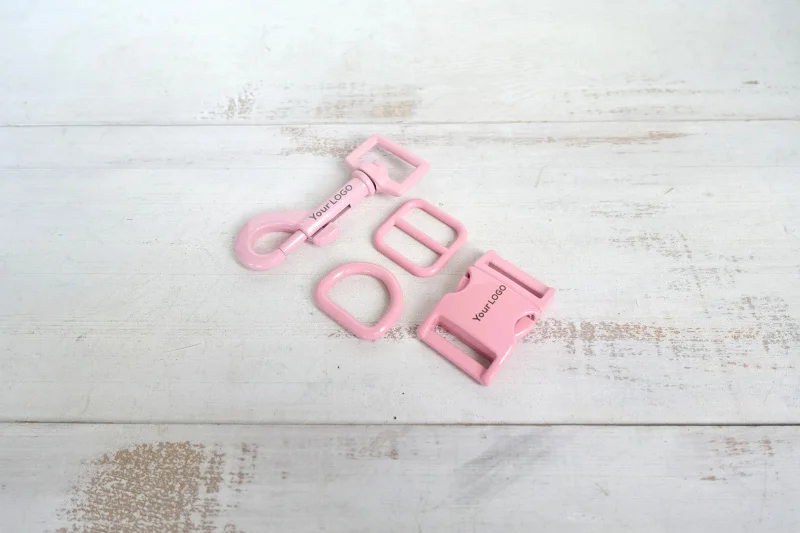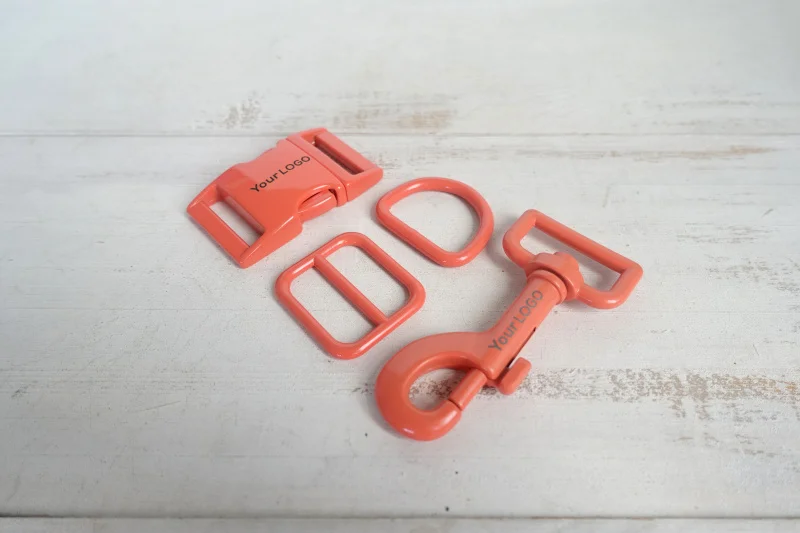100 juegos/lote (hebilla de metal + hebilla de ajuste + anillo D + cierre de perro de metal/juego) 20 mm y 25 mm, brindamos servicio de grabado láser para personalizar el logotipo 7 colores