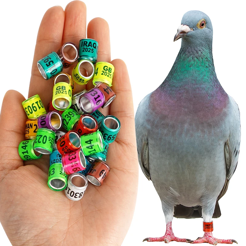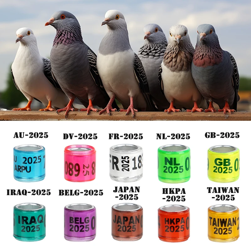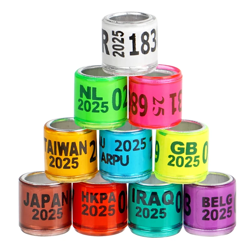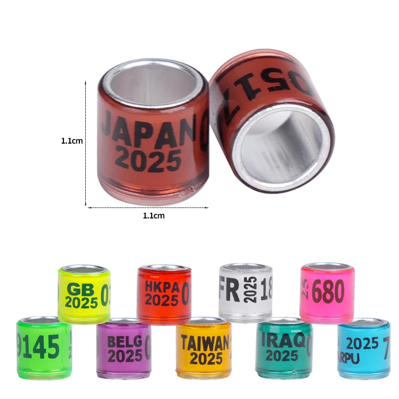 100 Uds. Anillo de pie de paloma de plástico de aluminio 2025, 10 colores, con letra numérica, anillos de señal de pierna de pájaro, círculo de identificación de carrera de mosca