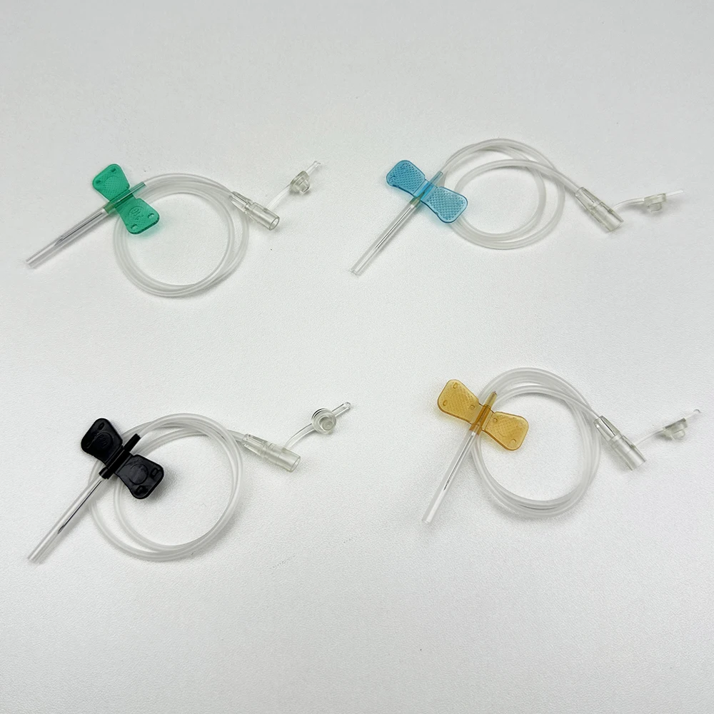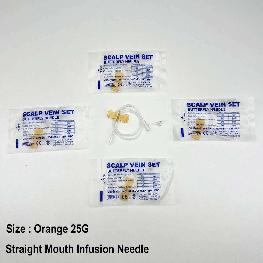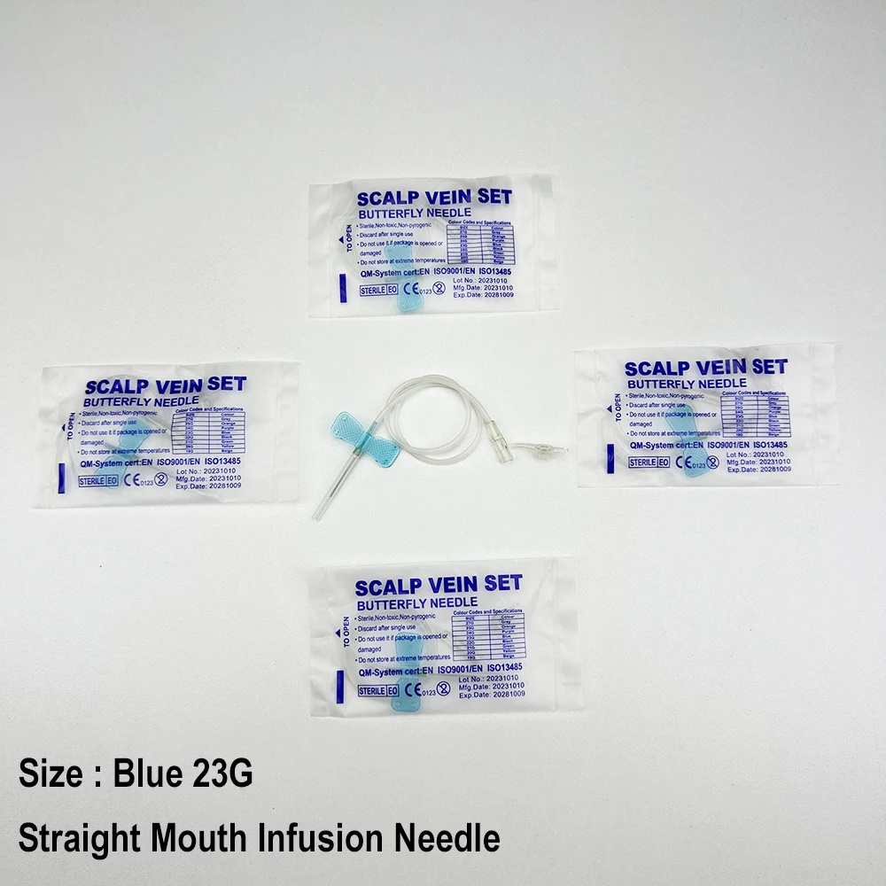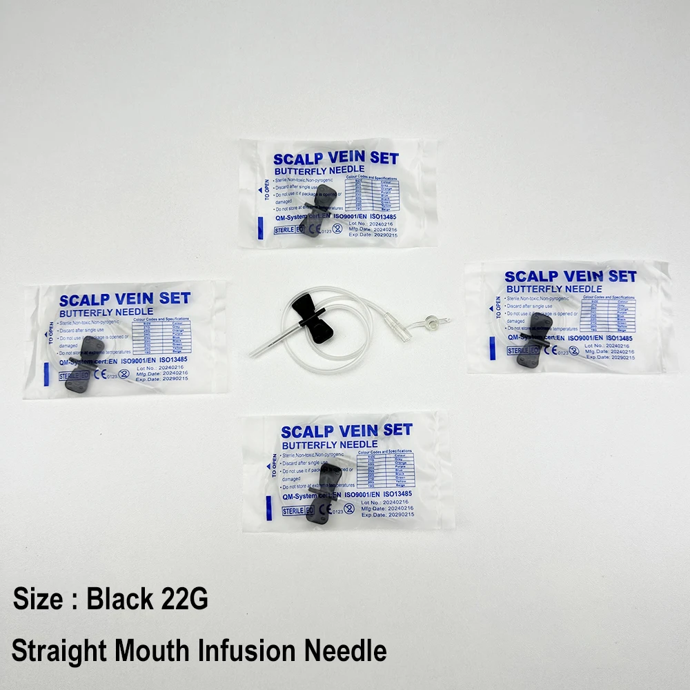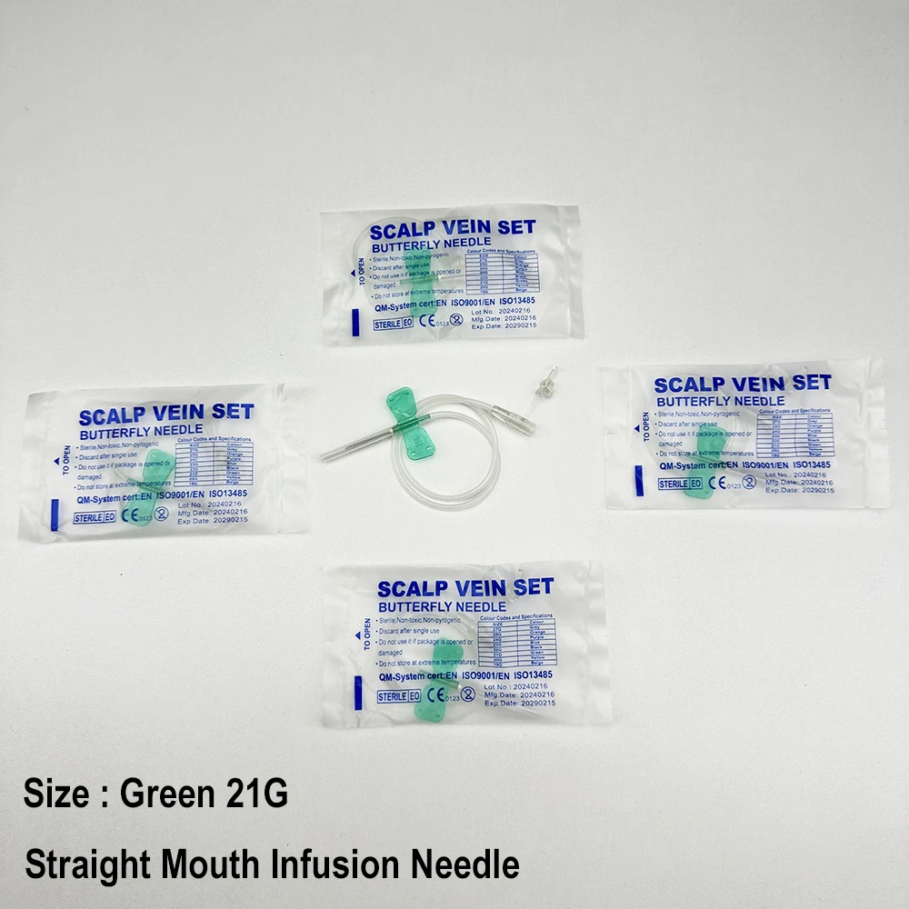 100 uds/aguja de infusión de mariposa de boca recta desechable para animales aguja de infusión de doble ala sala de cuidado de mascotas