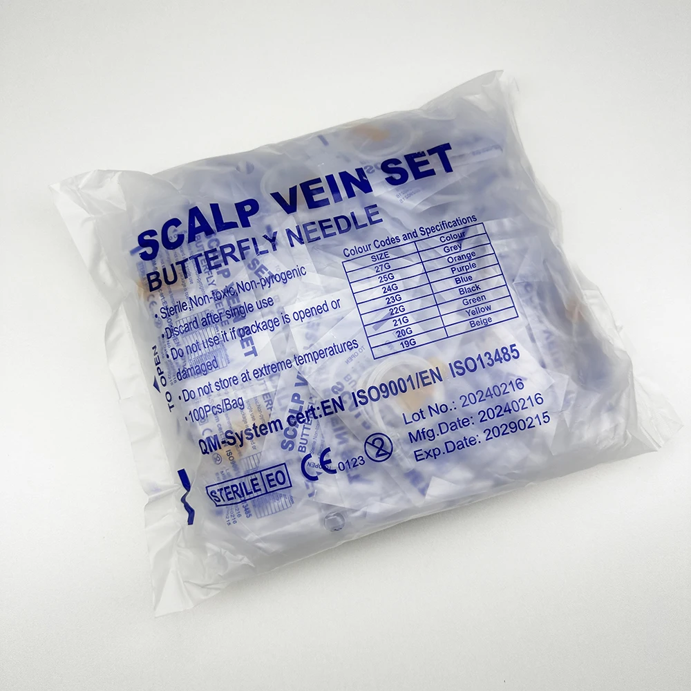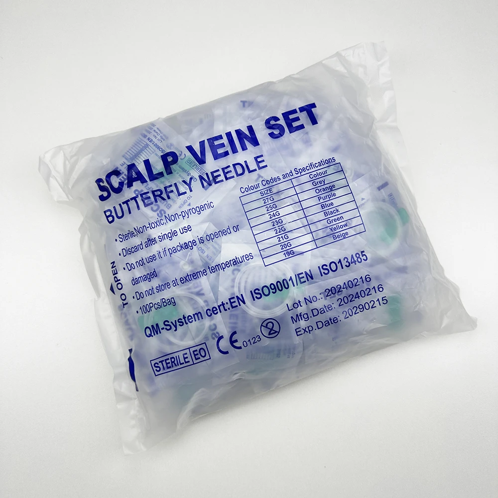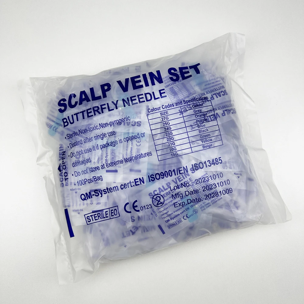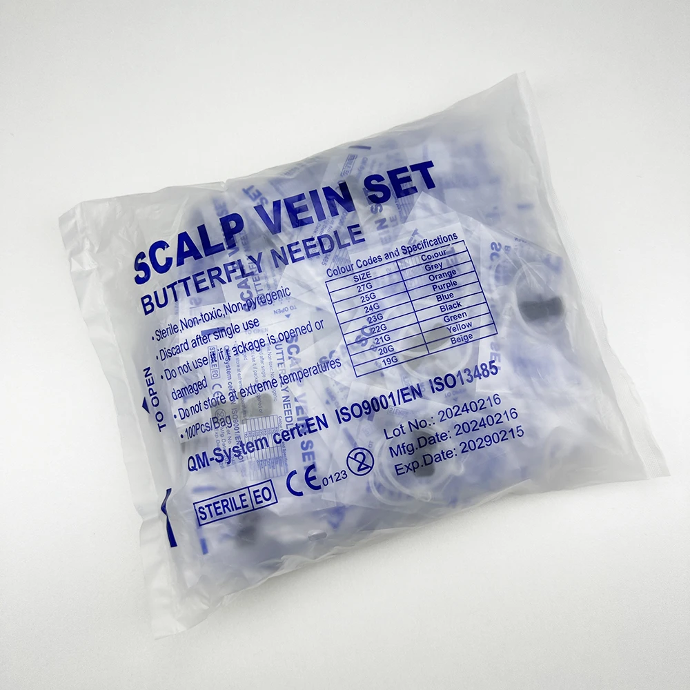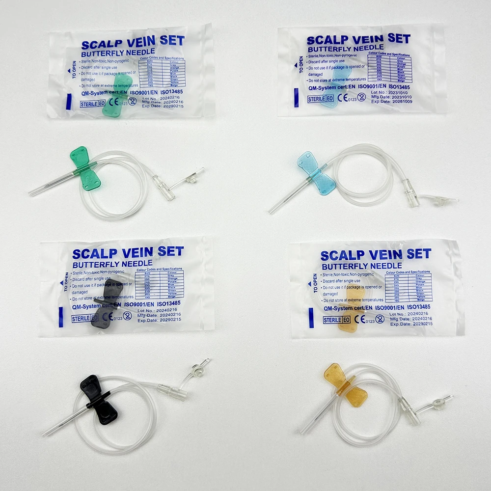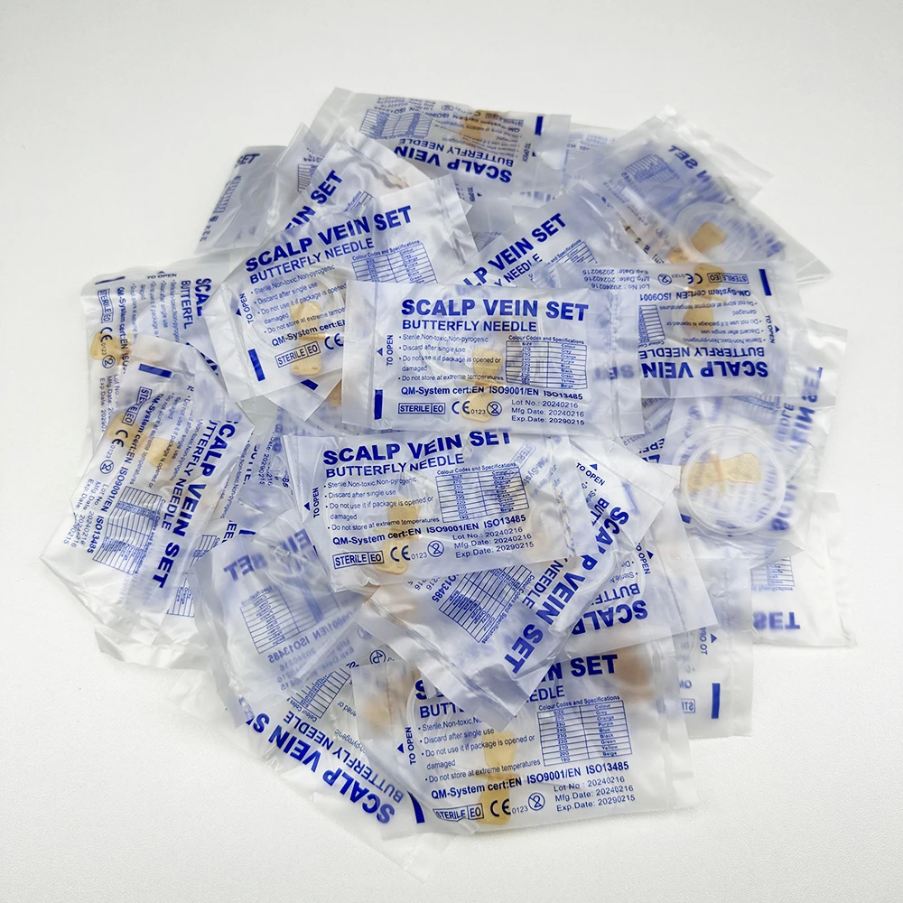 100 uds/aguja de infusión de mariposa de boca recta desechable para animales aguja de infusión de doble ala sala de cuidado de mascotas