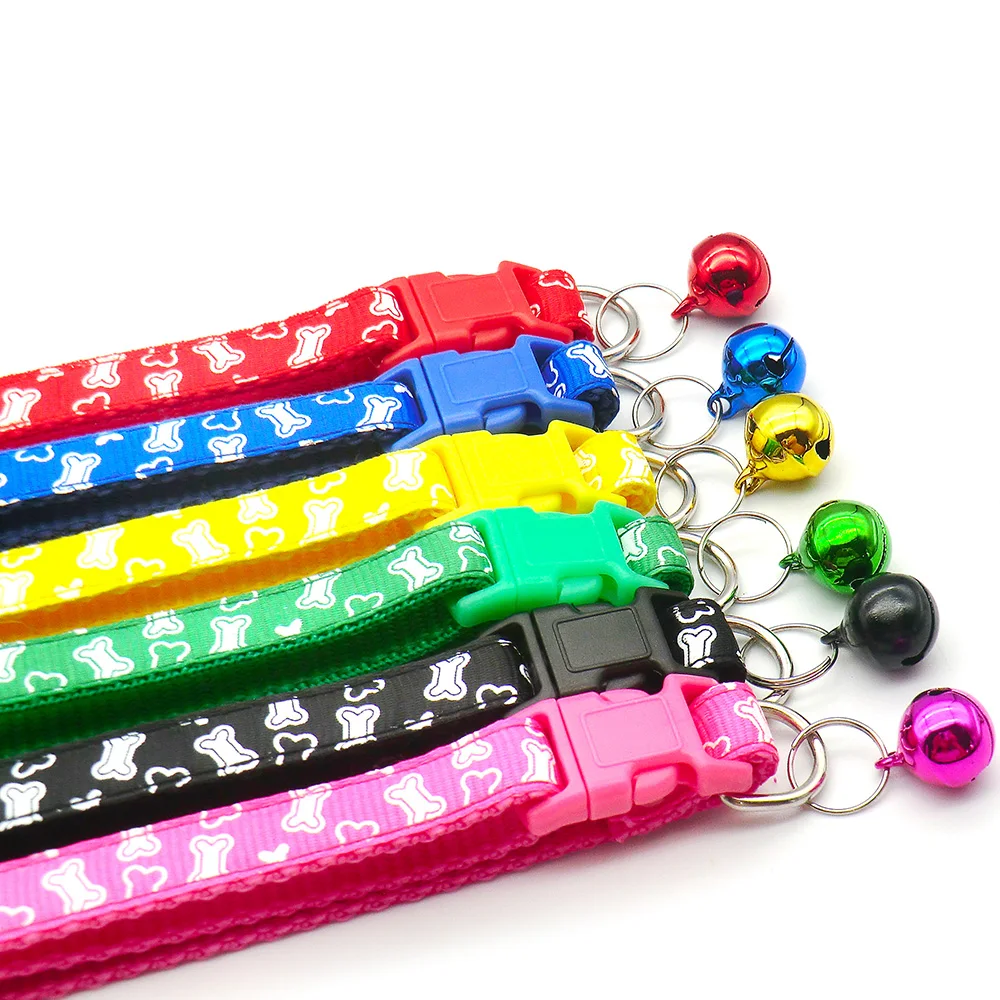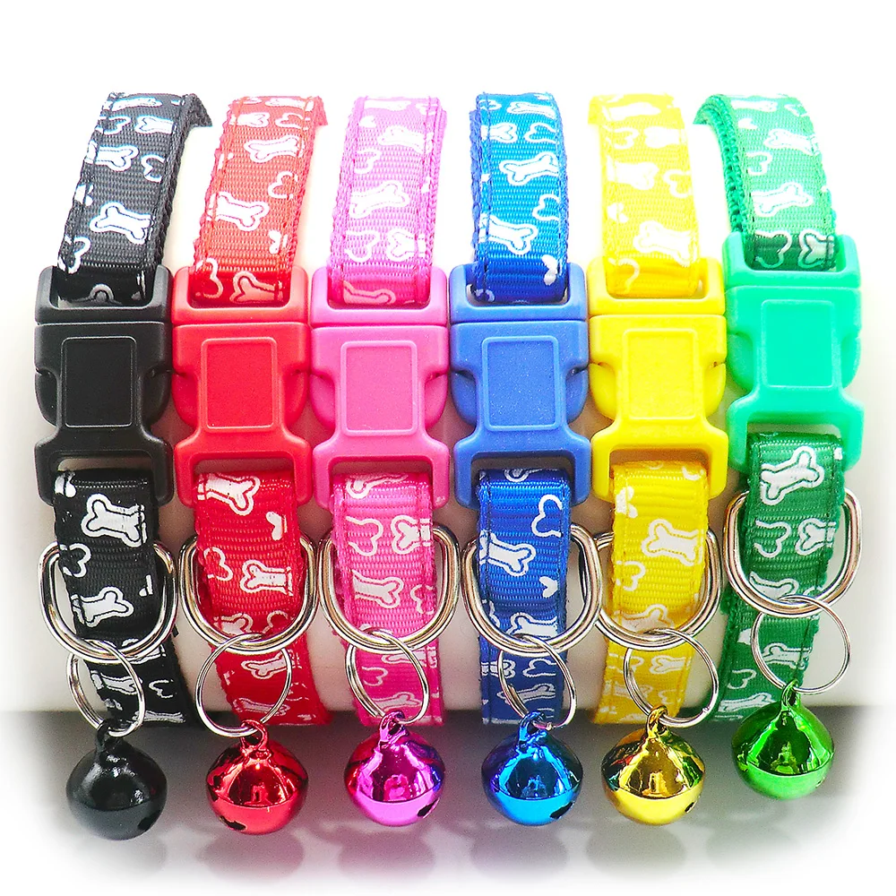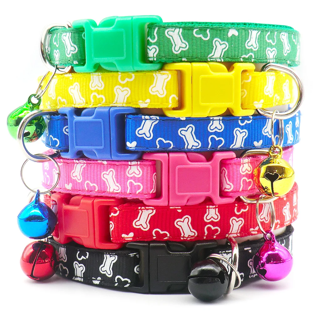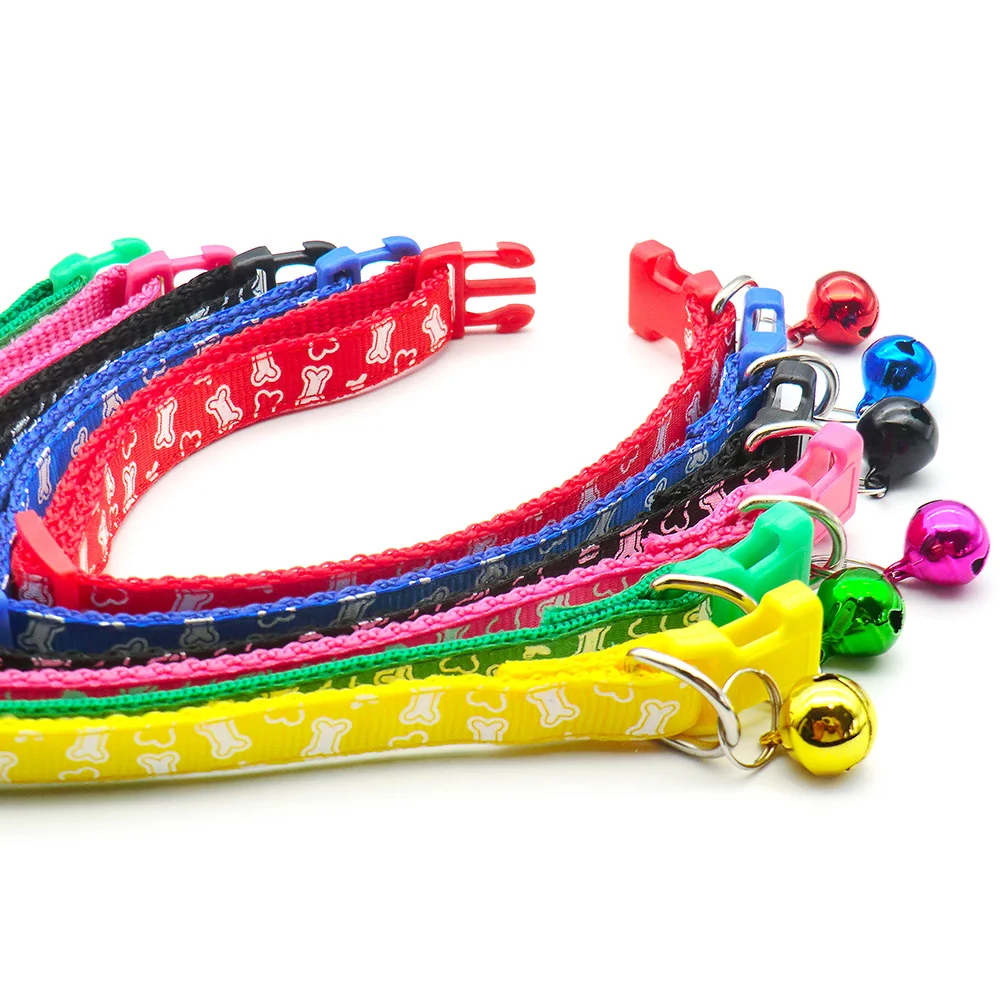 Colector de hueso para perro, suministros coloridos para mascotas con campana, hebilla ajustable, accesorios para perros, anillo para caminar al aire libre, 100 Uds.