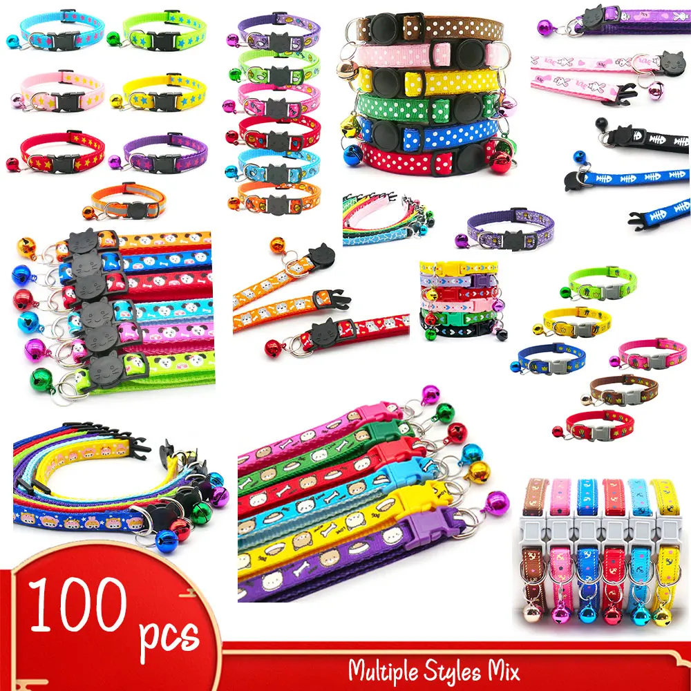 100 Uds. Collar multicolor de varios estilos para mascotas, accesorios de tracción para caminar antipérdida, contiene campanas se pueden utilizar para cachorros y gatitos