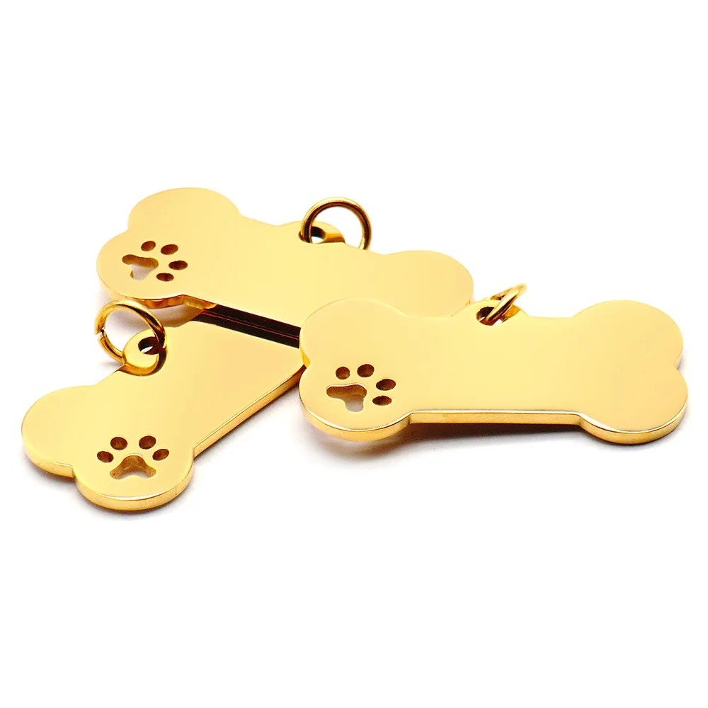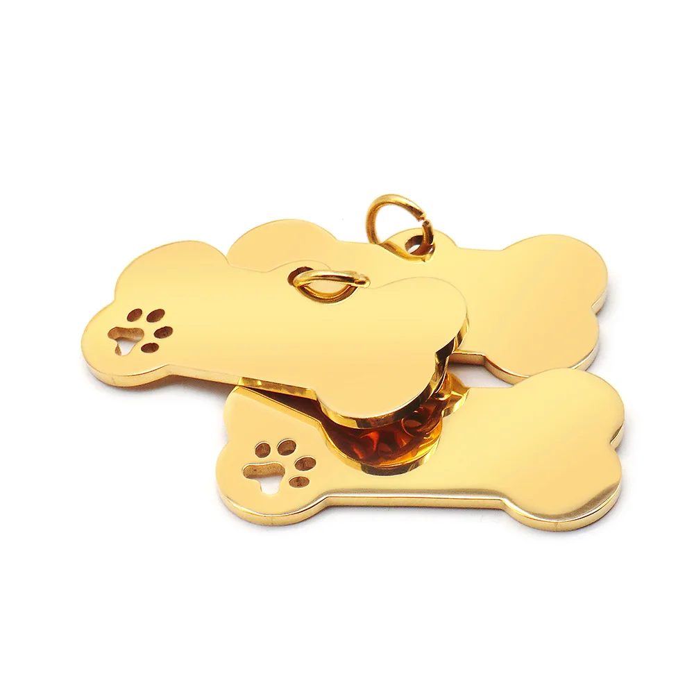 100 Uds. Etiqueta de identificación de hueso de acero inoxidable para mascota, Collar de pata de perro y gato, accesorios de decoración, collares de grabado, placa multifunción para perro