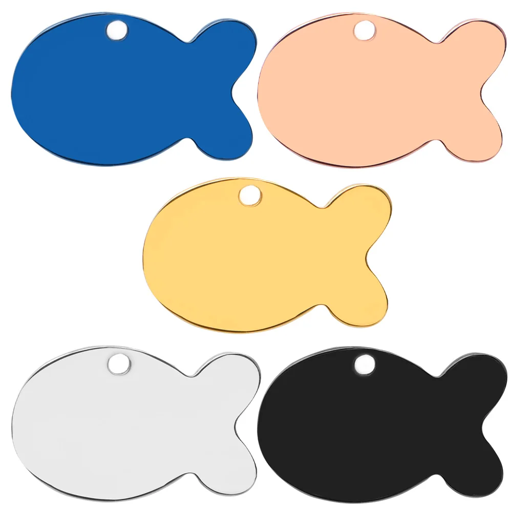 100 Uds. Etiqueta de identificación personalizada para mascotas forma de pez colgante grabado en blanco de acero inoxidable accesorios llavero regalo