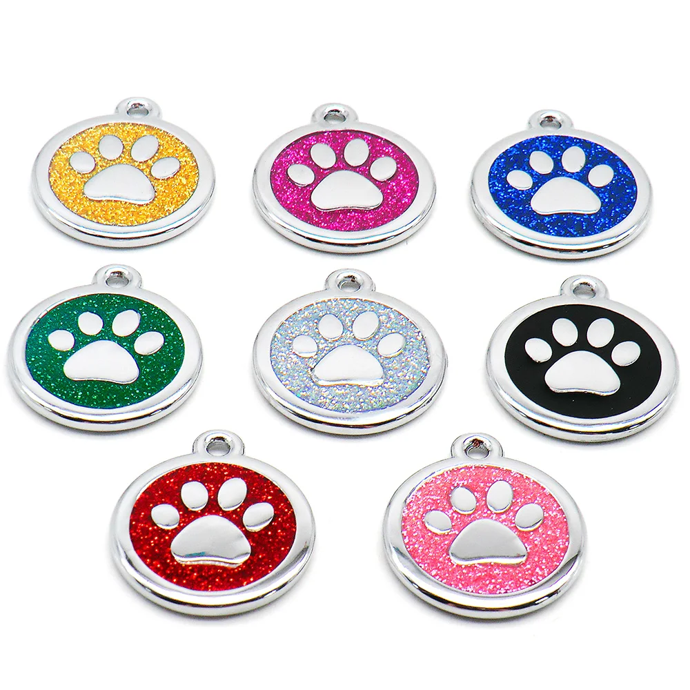 100 Uds. Etiqueta de identificación personalizada antipérdida para perro grabado brillante accesorios de Collar para perro de mascota etiqueta de identificación personalizada para gato y cachorro nombre de pata redonda de aleación