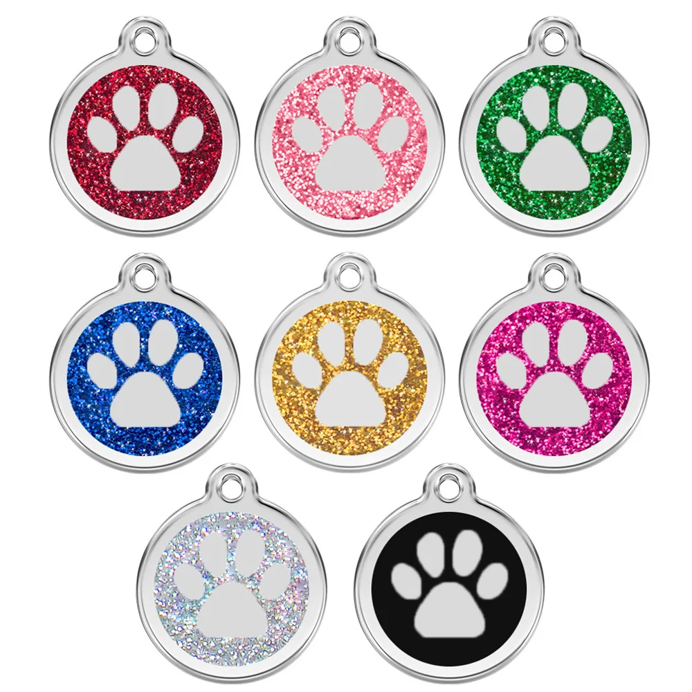 100 Uds. Etiqueta de identificación personalizada antipérdida para perro grabado brillante accesorios de Collar para perro de mascota etiqueta de identificación personalizada para gato y cachorro nombre de pata redonda de aleación