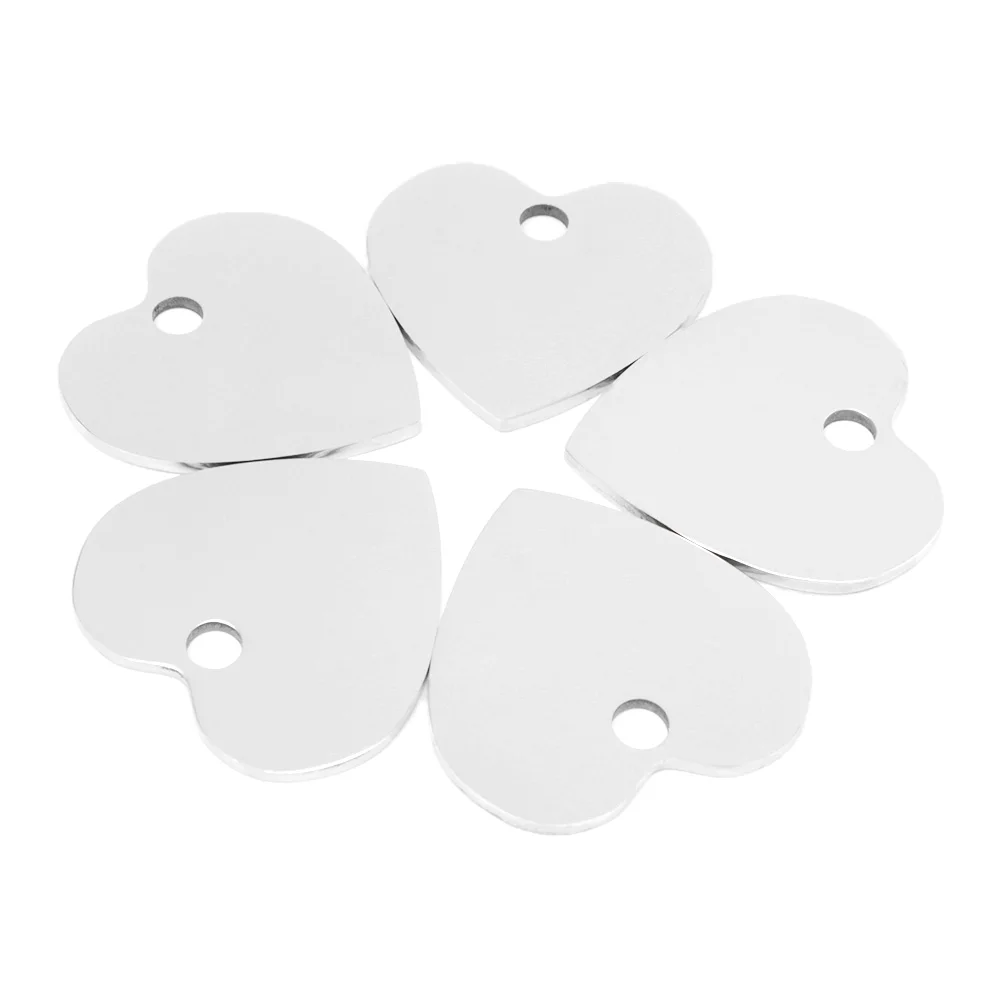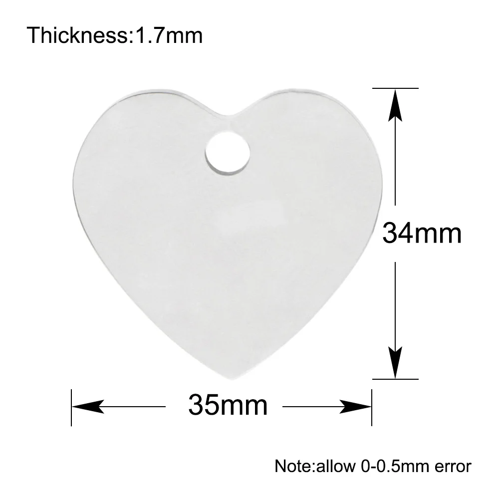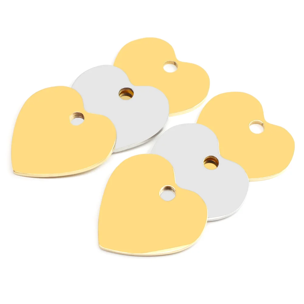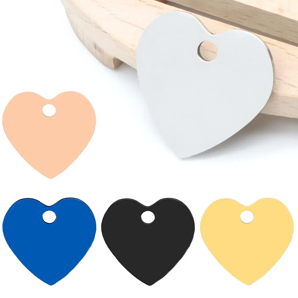 100 Uds. Etiqueta de identificación personalizada para perro mascota, colgante láser con dije de corazón de acero inoxidable en blanco, placa de joyería grabable, recuerdo de regalo