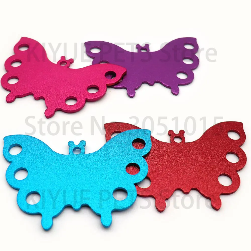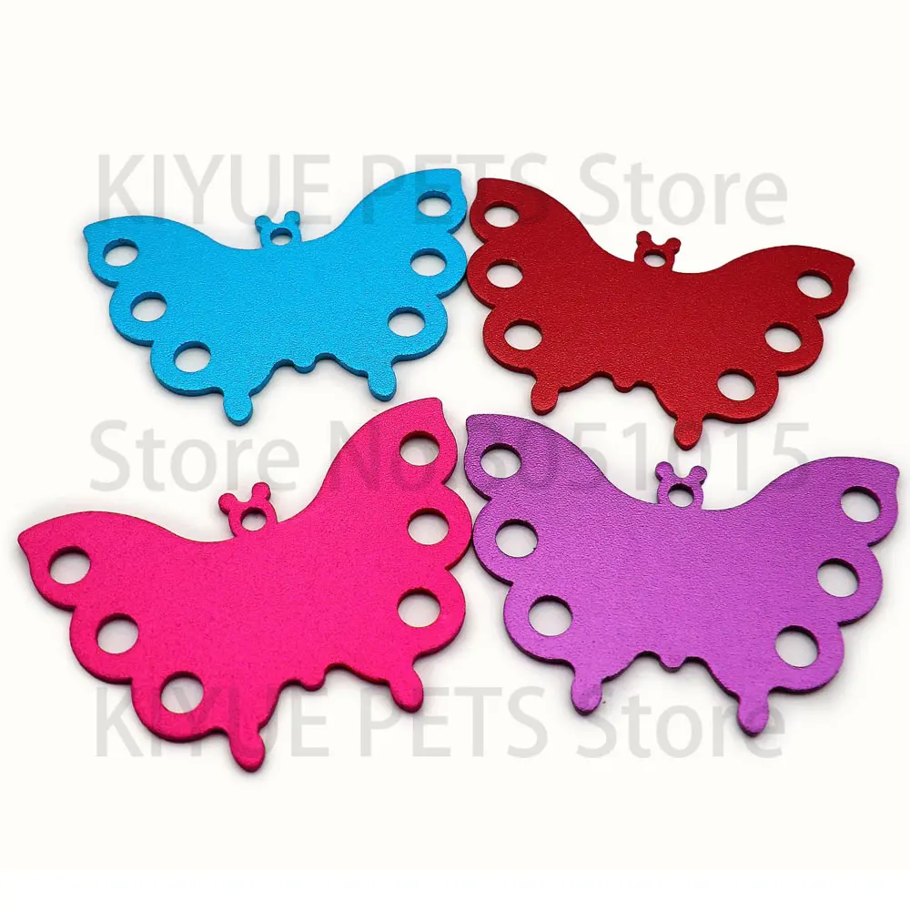 100 Uds. Llavero en blanco de Metal con etiqueta de mariposa, Collar para mascota, colgante, accesorio de joyería, identificación de gato para exteriores, antipérdida