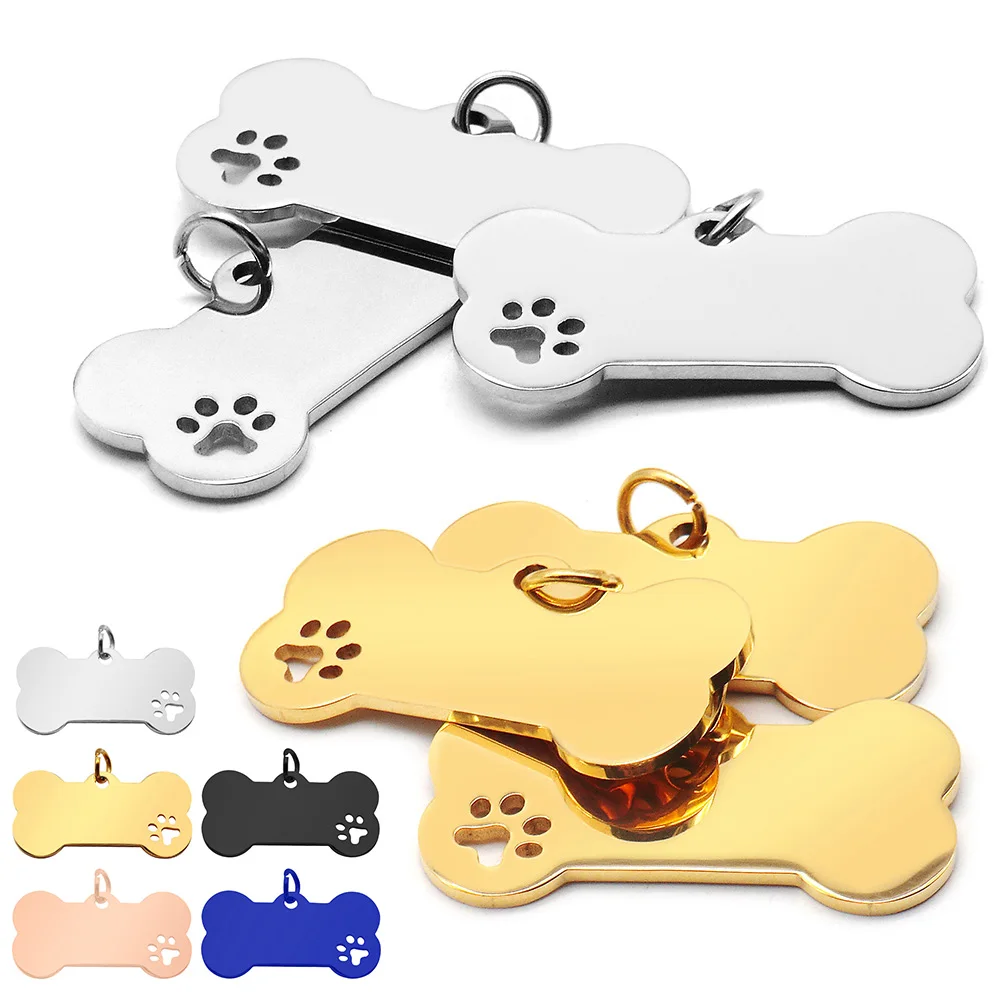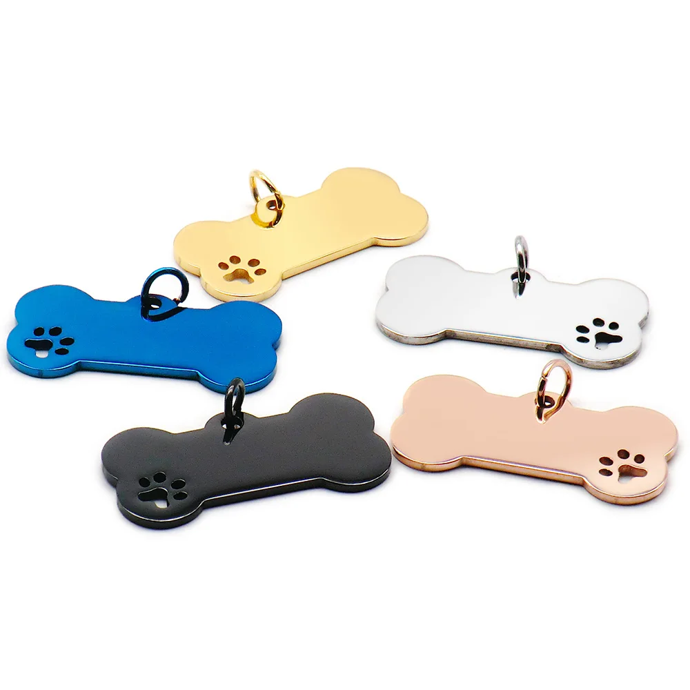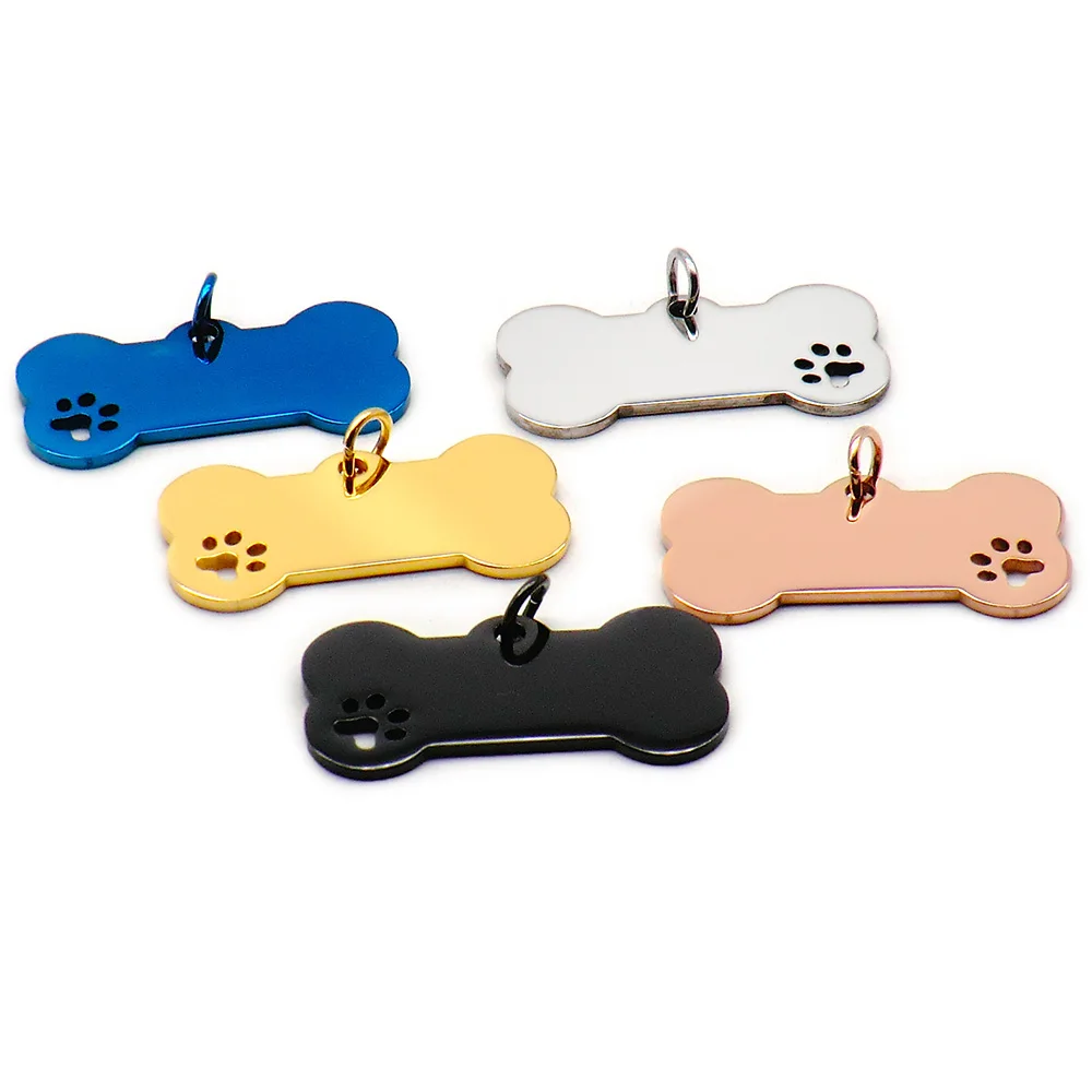 100 Uds. Etiqueta de perro en blanco de acero inoxidable, Collar de Animal para mascotas grabado antipérdida, accesorios personalizados para gatos, cachorros, placa de identificación, etiquetas de nombre