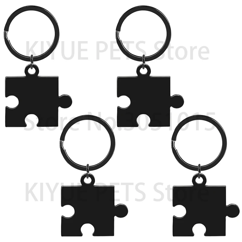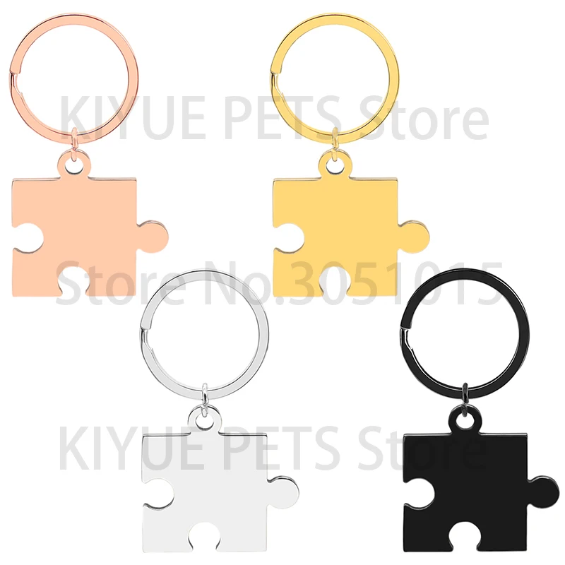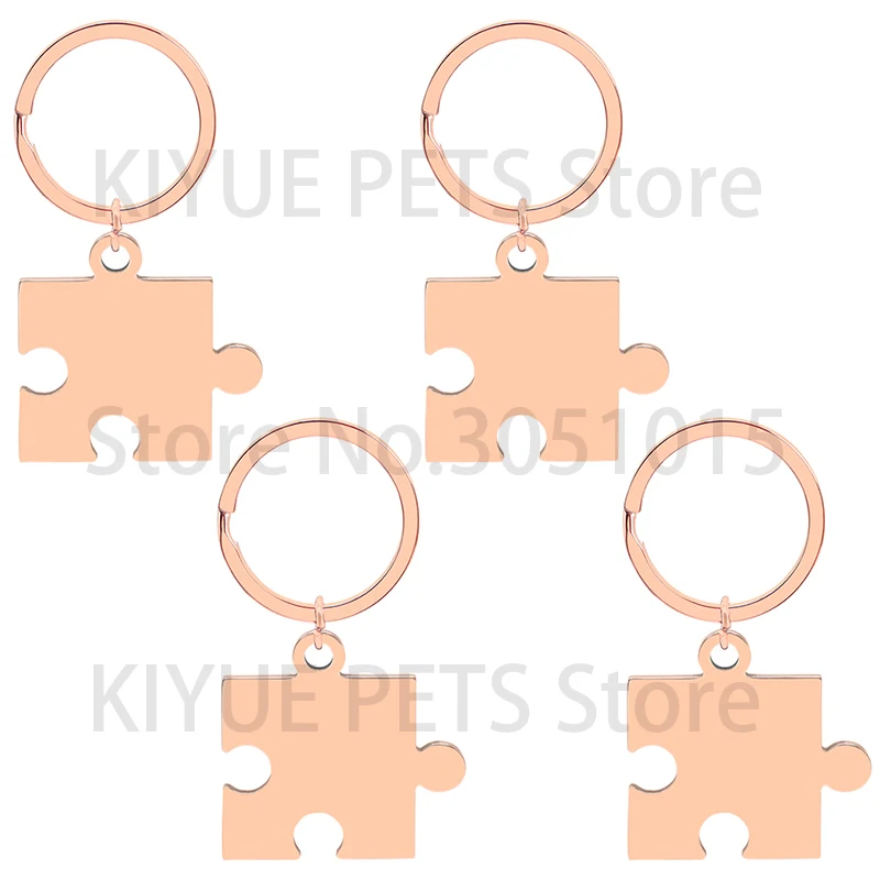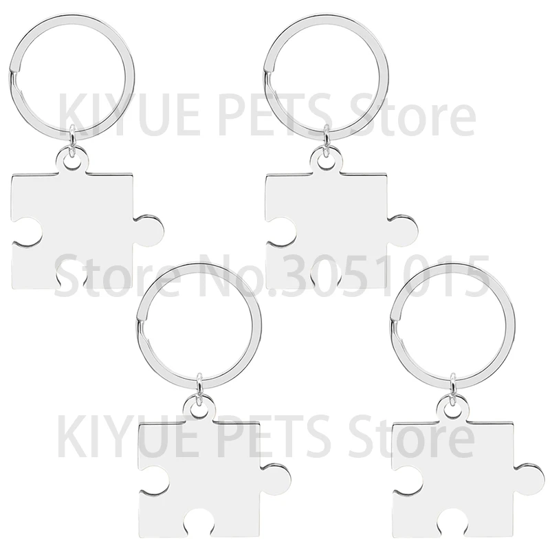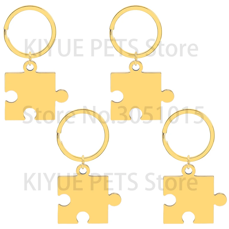 100 Uds. Etiqueta para perro mascota en blanco de acero inoxidable, se puede grabar, Collar DIY, rompecabezas antipérdida, placa con nombre, llaveros para coche, suministros para parejas