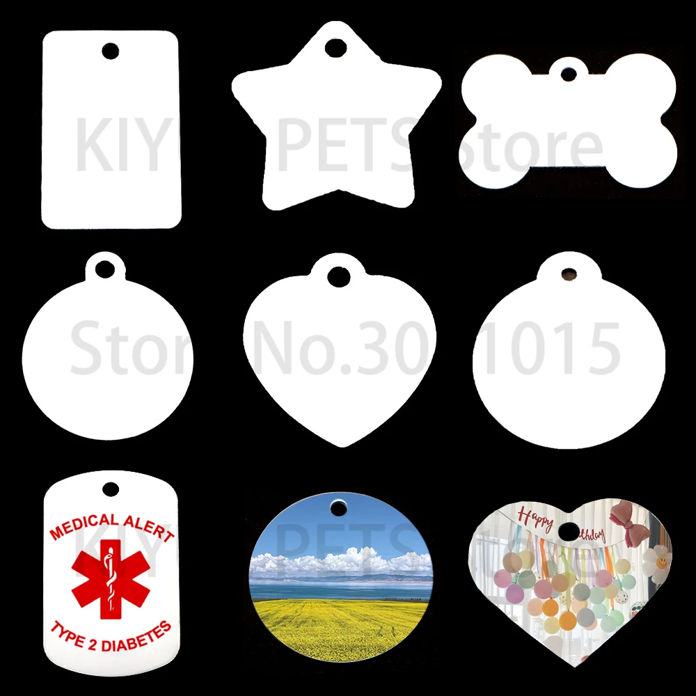 100 Uds., etiqueta personalizada de sublimación para perros, identificación de aluminio para mascotas, accesorios para gatos, etiqueta de dirección para perros, impresión por transferencia de calor, placa de identificación en blanco