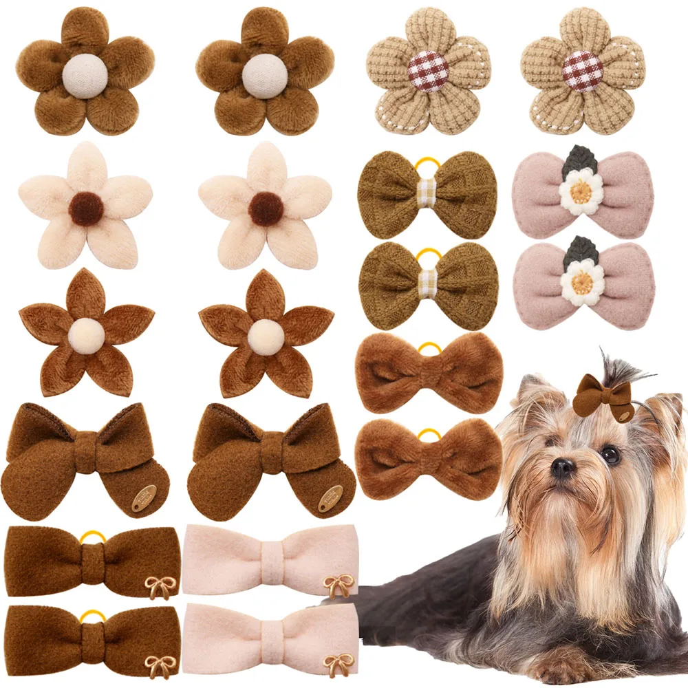 100 Uds exquisitos lazos para el pelo de perro Otoño Invierno moda perros pequeños lazos de aseo bandas de goma accesorios para el cabello de perros