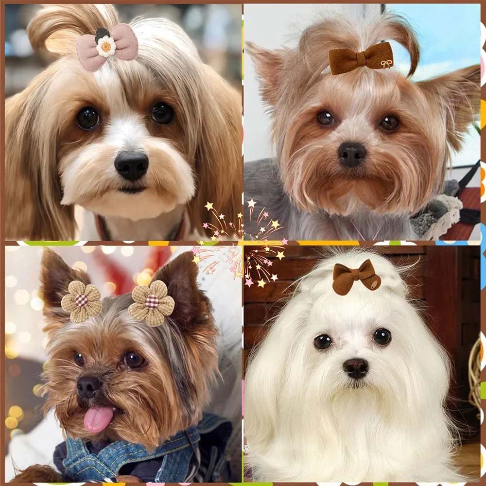 Nuevos varios estilos de lazos para perros con bandas de goma, patrones de puntos de flores, horquilla hecha a mano para perros y gatos, accesorios para el cuidado del cabello