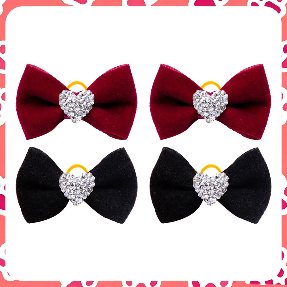 Artículo: 100 unidades en pares de lazos para perros, estilo brillante de amor, lazos para el pelo para perros pequeños, bandas de goma, accesorios para el cabello para mascotas, cuidado de perros y mascotas