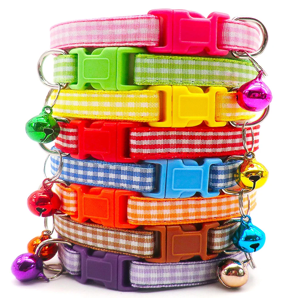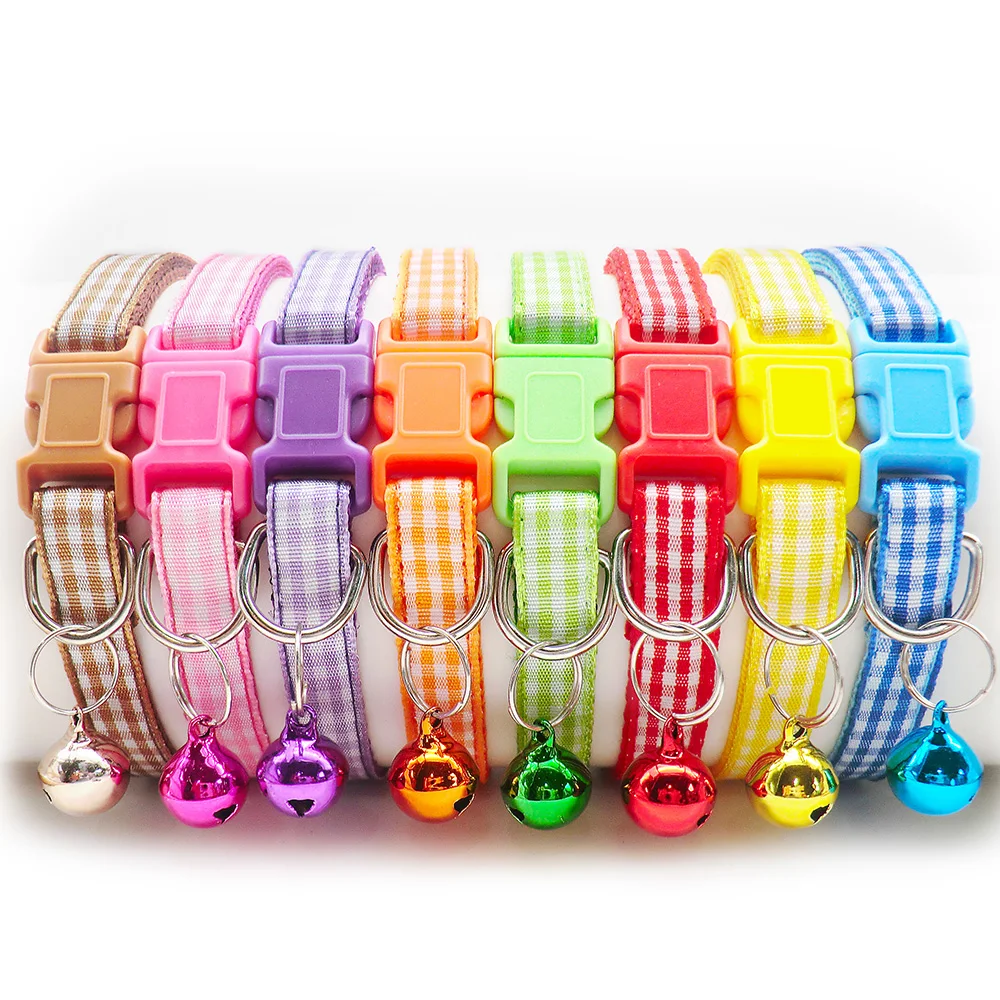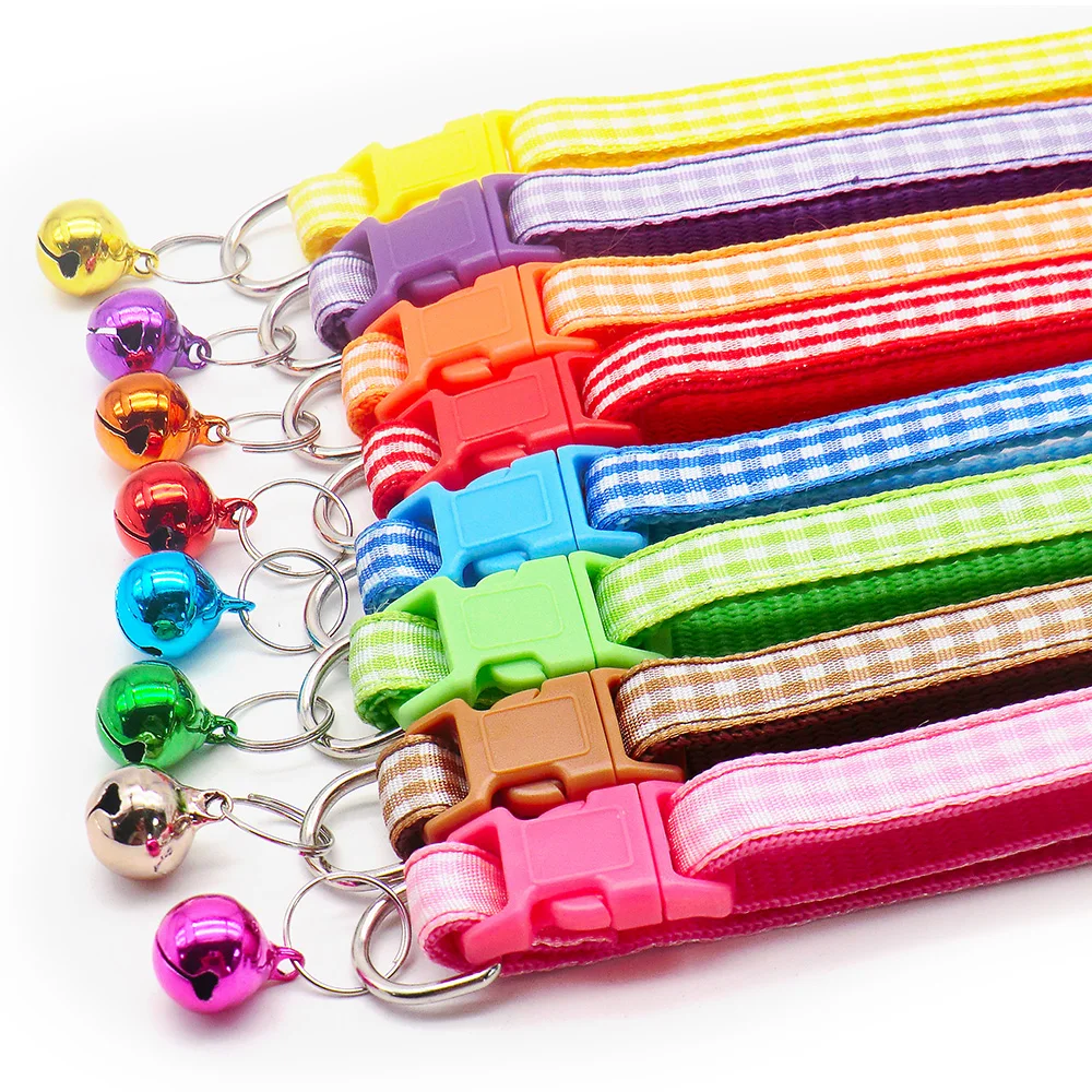 100 Uds collar para perro mascota ajustable moda a cuadros Collar de campana para gatos y collares para perros pequeños Teddy Pomeranian producto al aire libre
