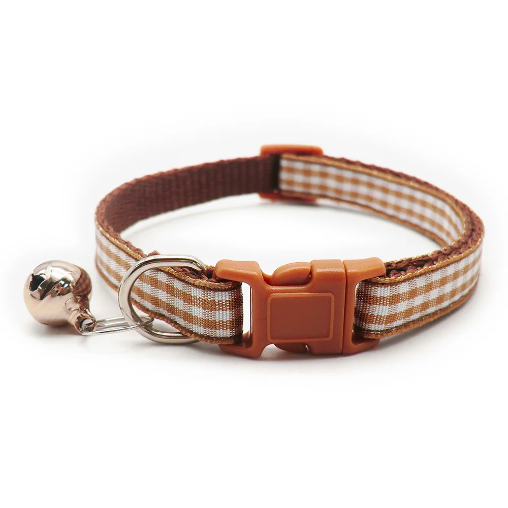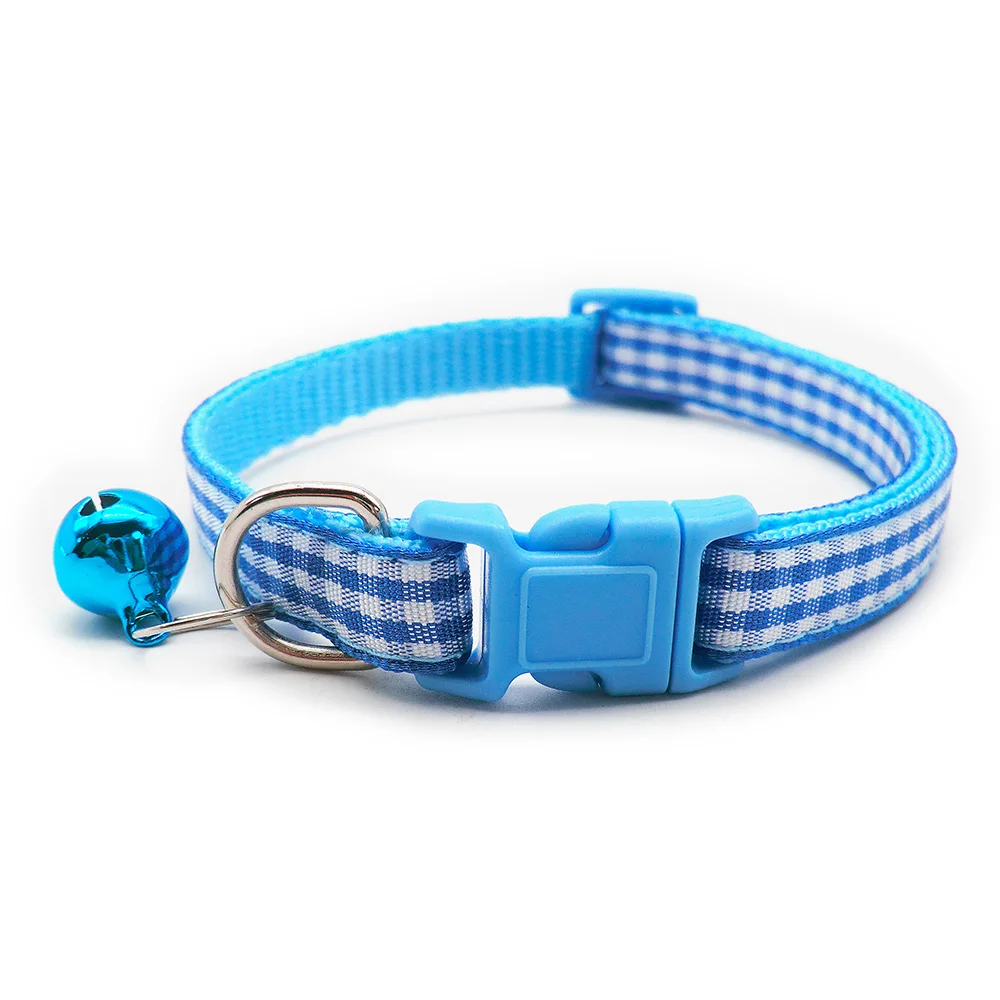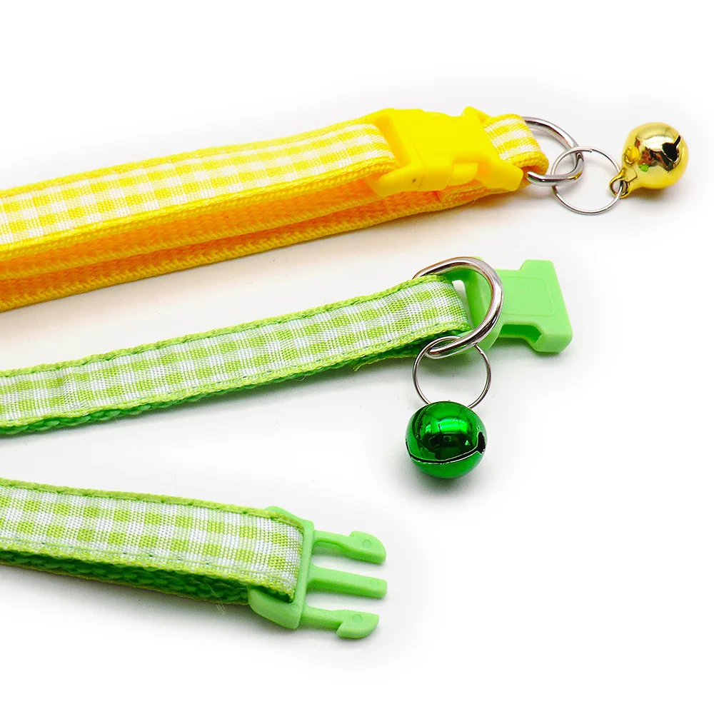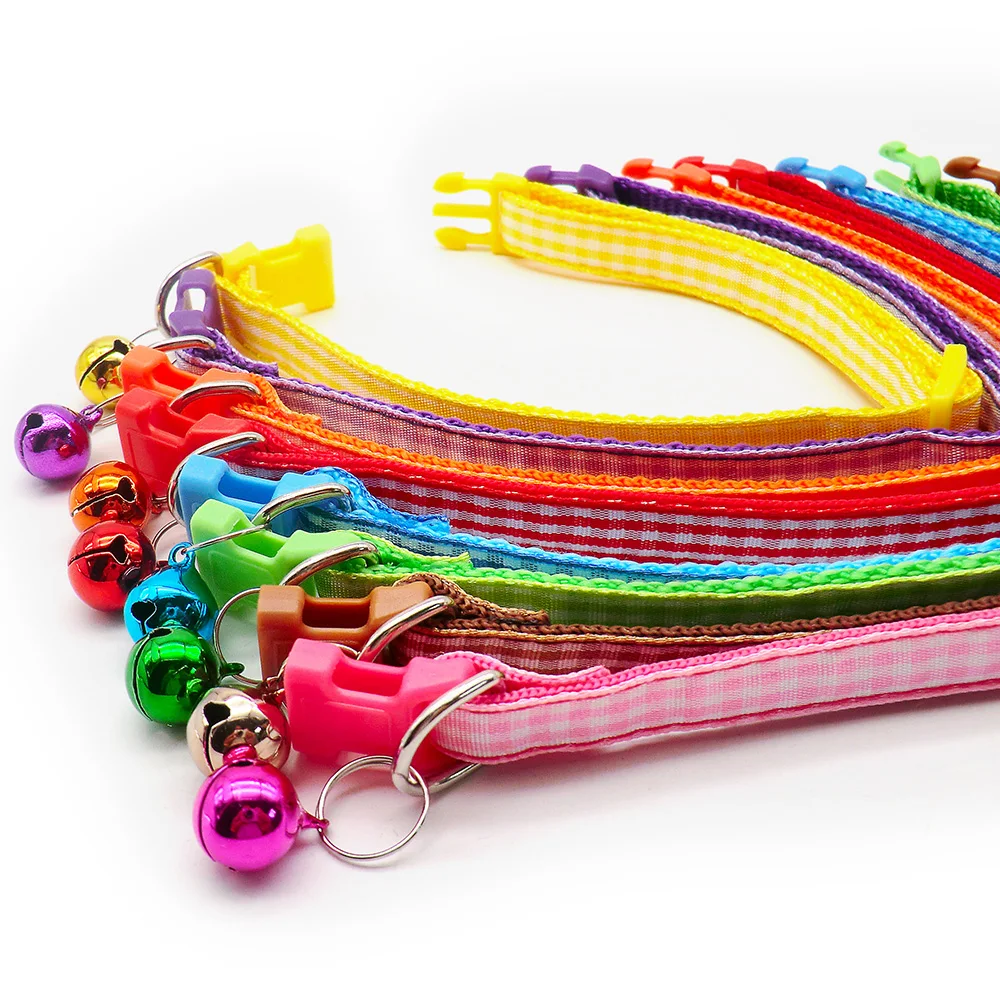 100 Uds collar para perro mascota ajustable moda a cuadros Collar de campana para gatos y collares para perros pequeños Teddy Pomeranian producto al aire libre