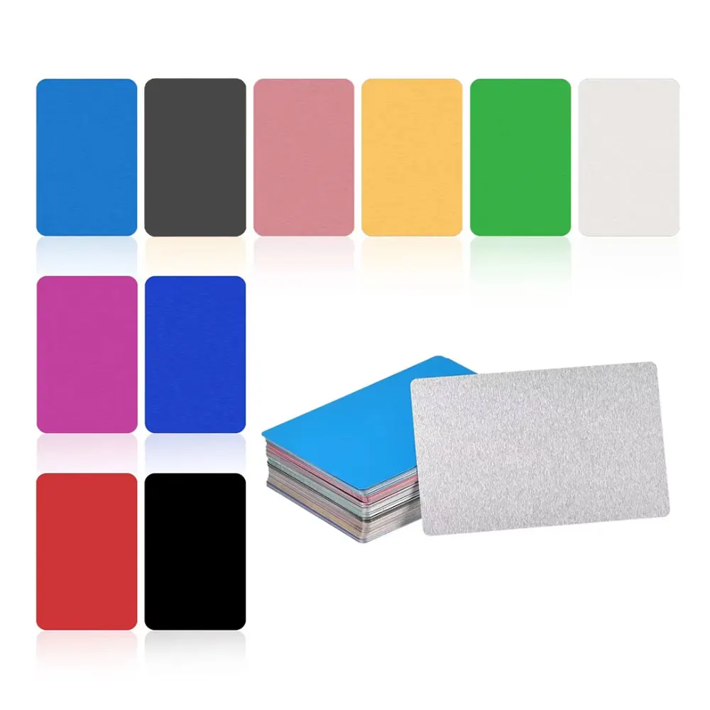 100 Uds placa de identificación de Metal tarjetas de nombre comerciales hoja de Metal de aluminio Multicolor Material de prueba de grabado láser para tarjeta de nombre DIY