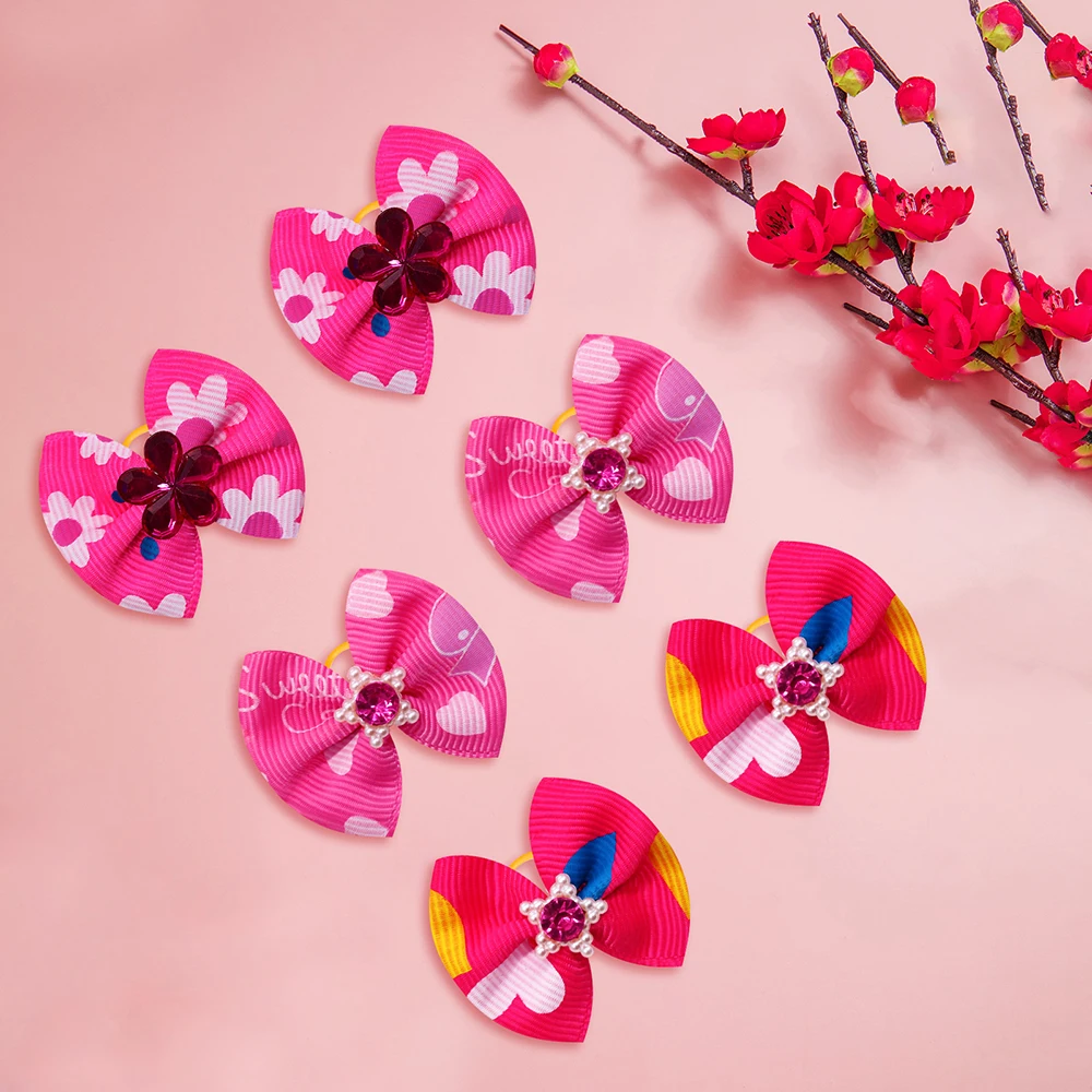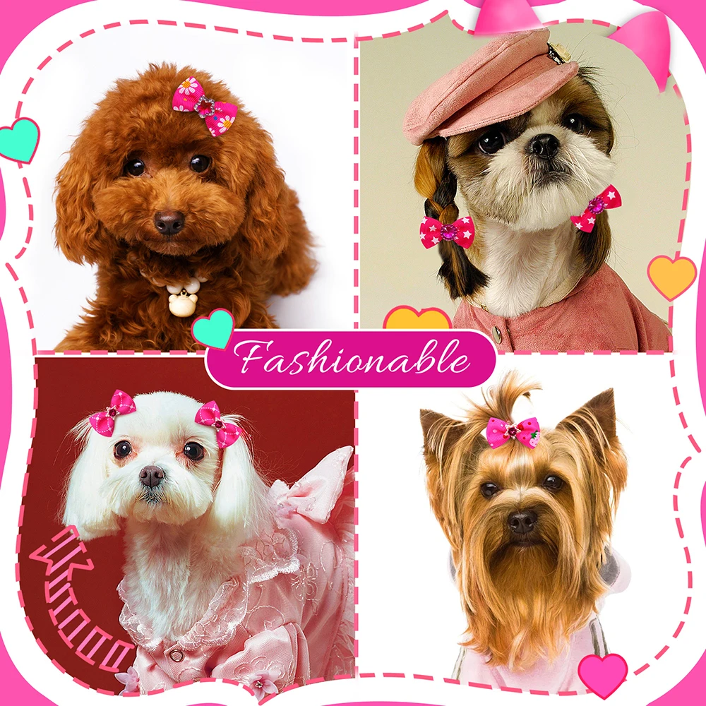 Lazos para el pelo de perro pequeño, 100 en pares, lazos de diamantes y perlas para perros, accesorios para el cabello con lazo para perros, accesorios para el cuidado del perro